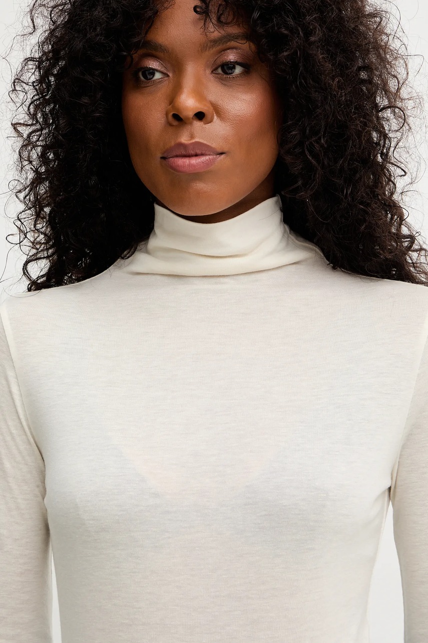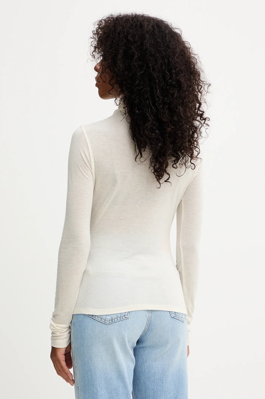 BOSS longsleeve z wełną kolor beżowy z półgolfem 50550639