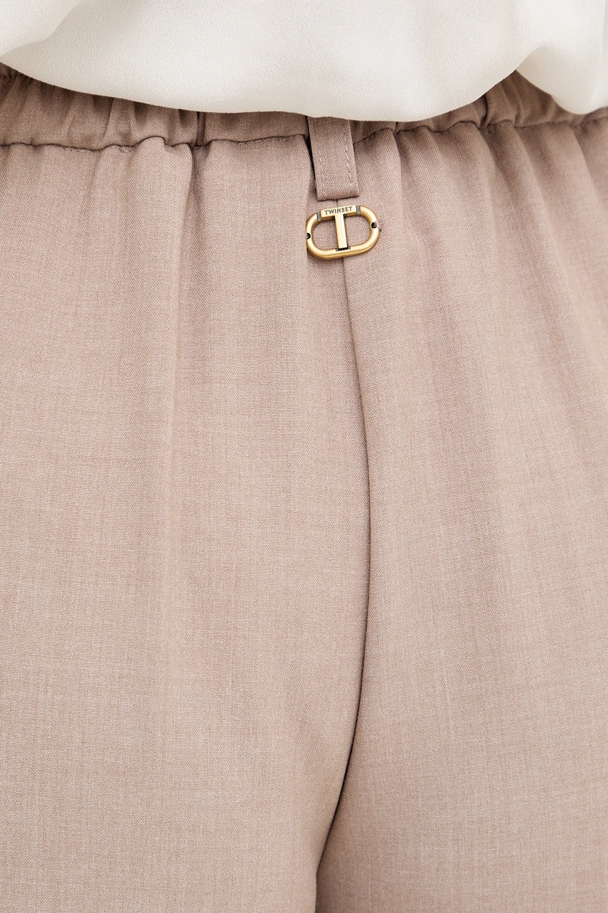Twinset spodnie damskie kolor beżowy szerokie high waist 252TF2043