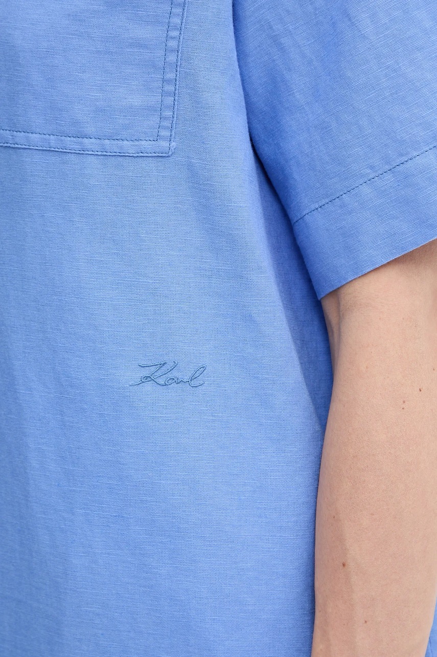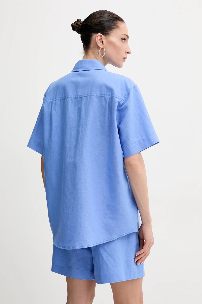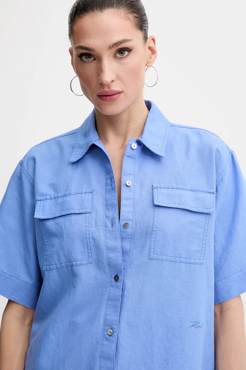 Karl Lagerfeld koszula lniana damska kolor niebieski relaxed z kołnierzykiem klasycznym A2W11012