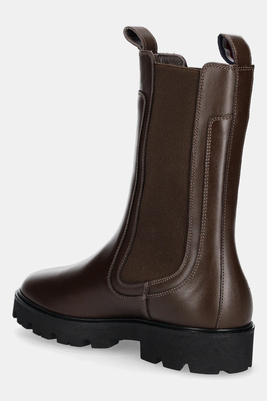Tommy Hilfiger sztyblety skórzane TH LTHR MID CHELSEA damskie kolor brązowy na płaskim obcasie FW0FW08770