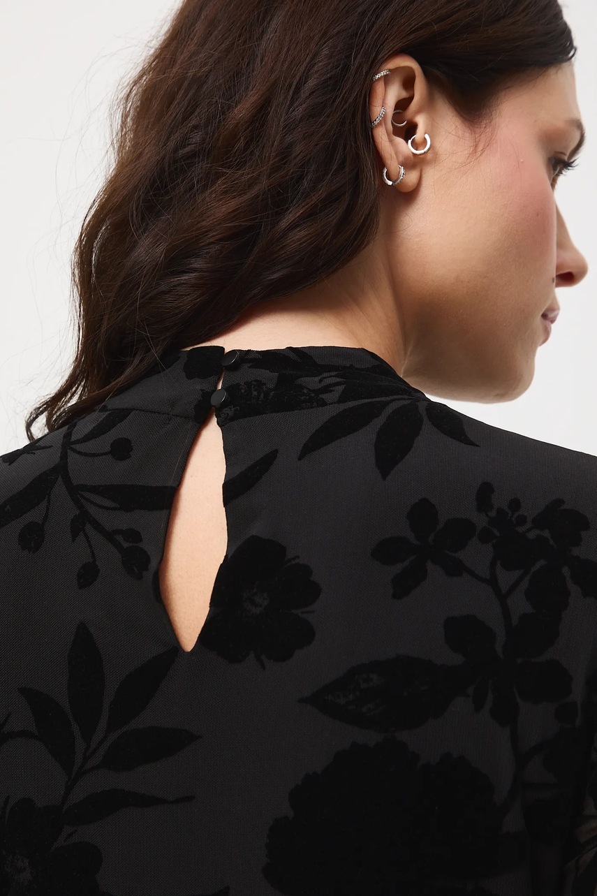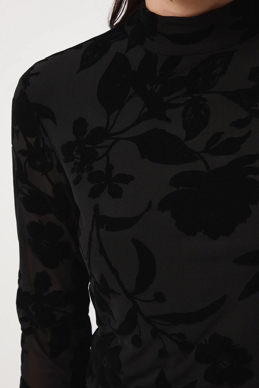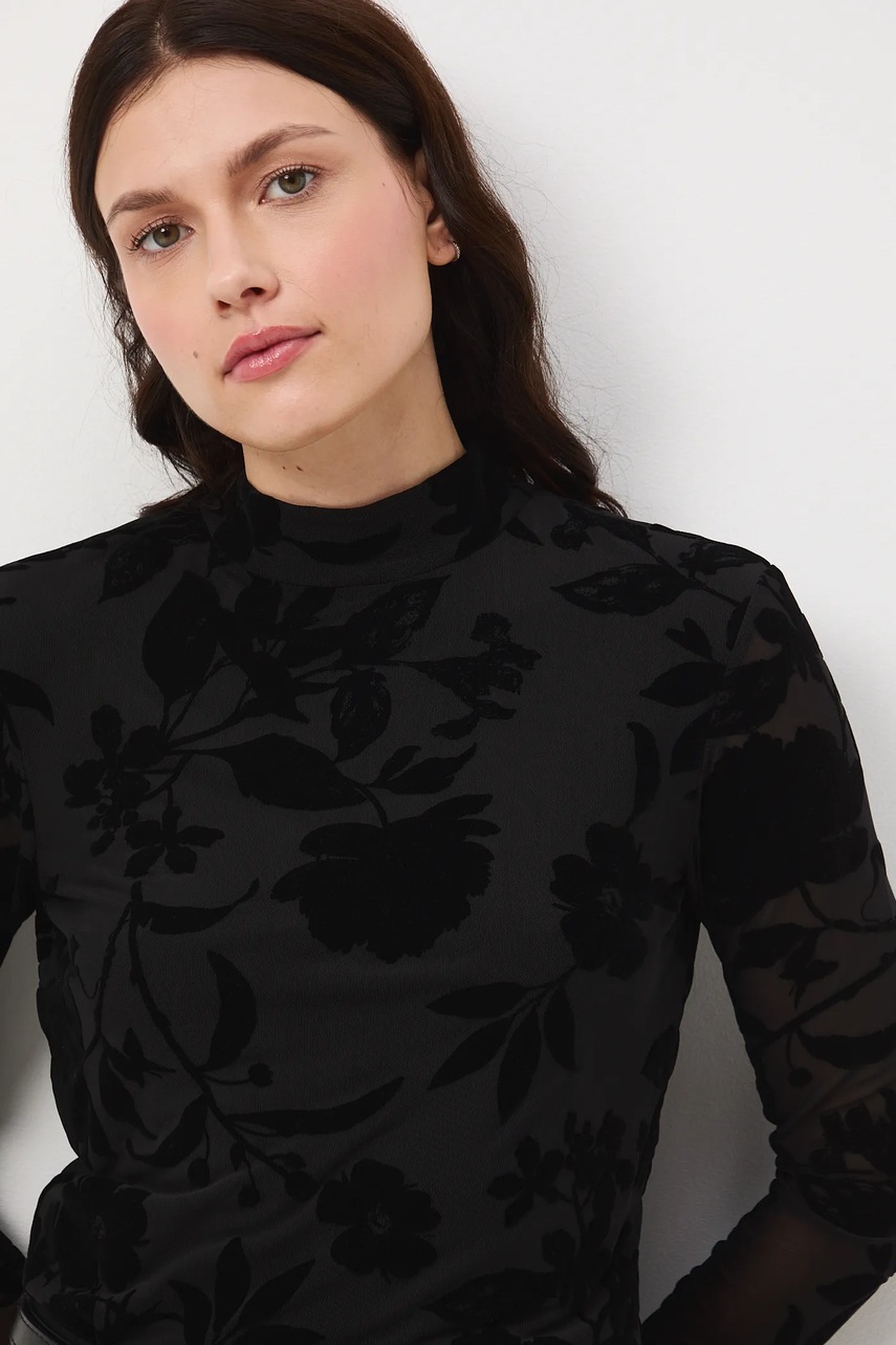 - Model wykonany z siateczkowego materiału z ozdobnym, welurowym nadrukiem.