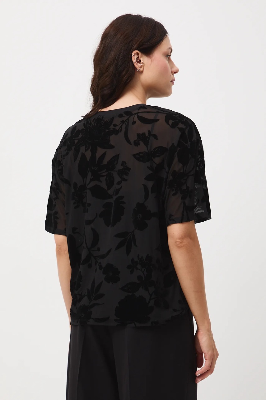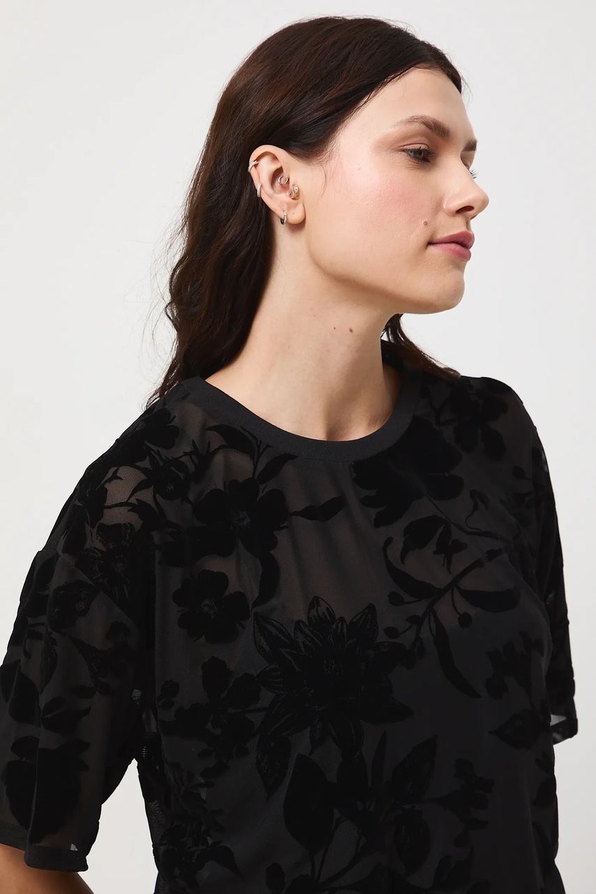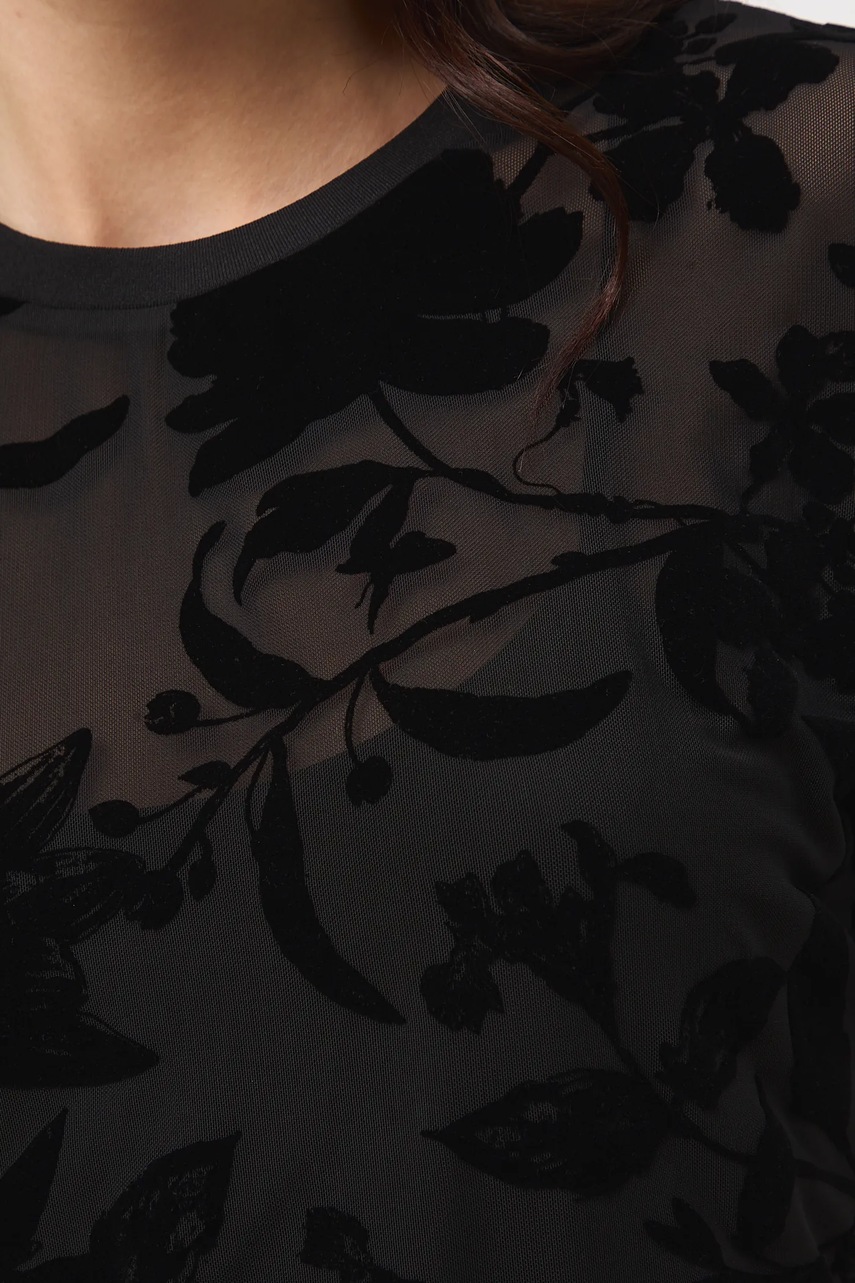 - Model wykonany z siateczkowego materiału z ozdobnym, welurowym nadrukiem.