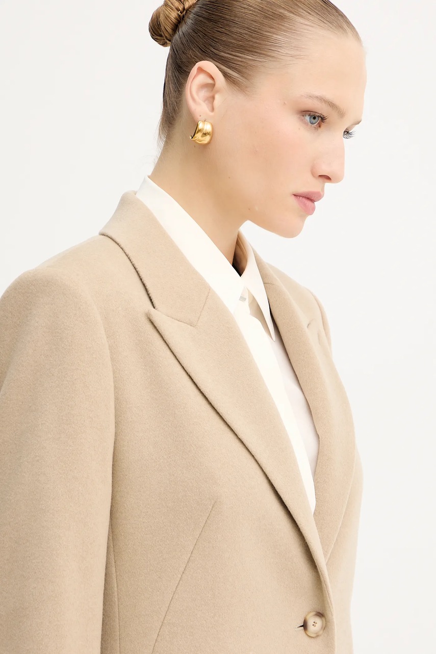 BOSS płaszcz wełniany kolor beżowy 50548371