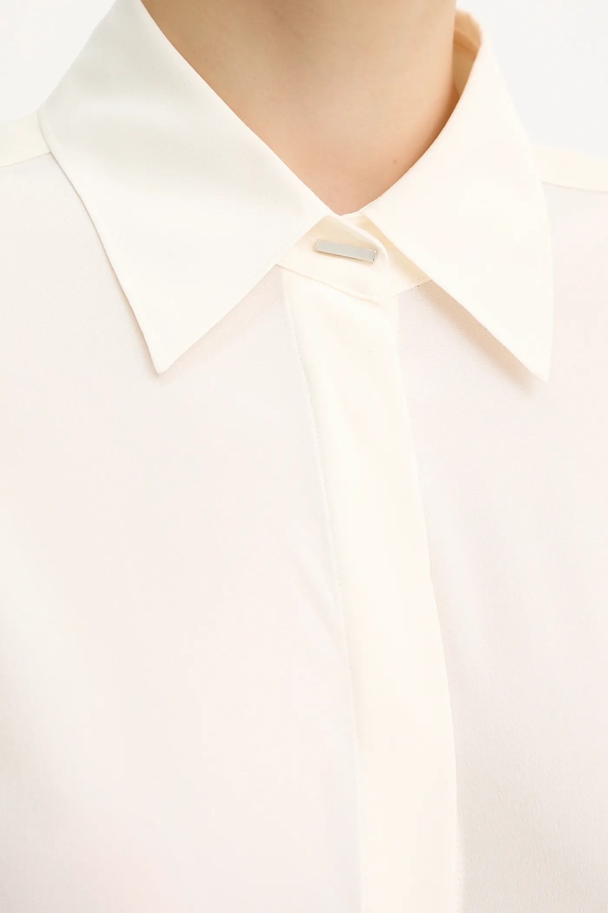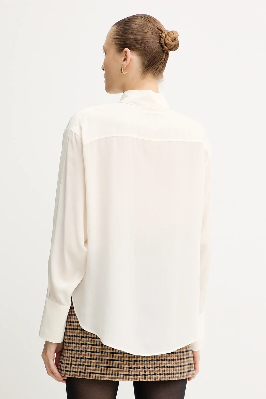 BOSS koszula jedwabna damska kolor beżowy relaxed z kołnierzykiem klasycznym 50551961