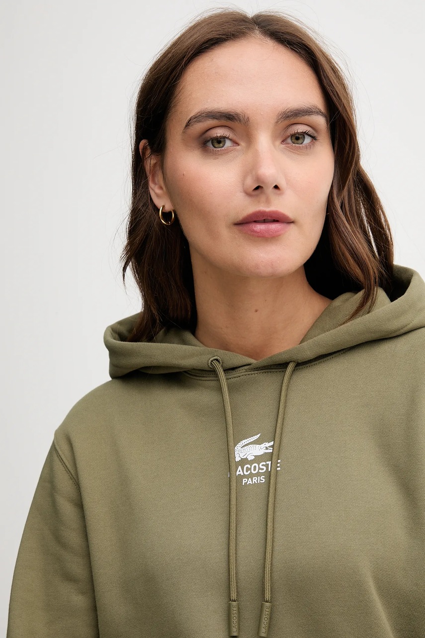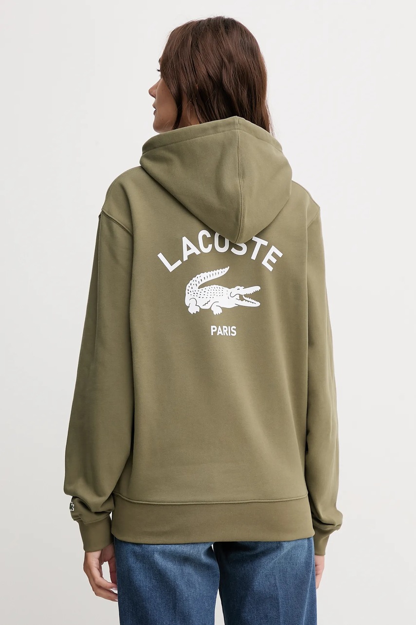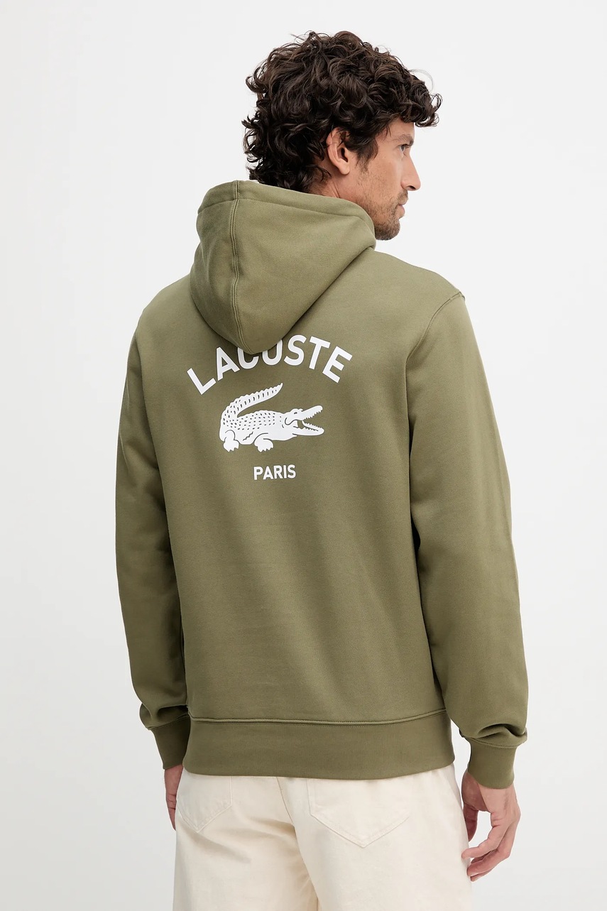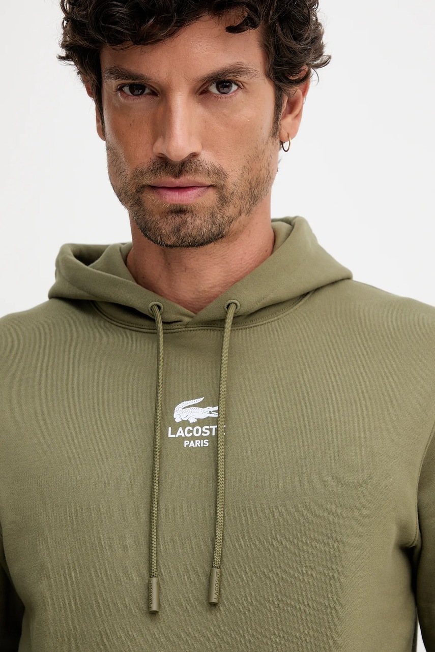 Lacoste bluza bawełniana kolor zielony z kapturem z nadrukiem SH2740