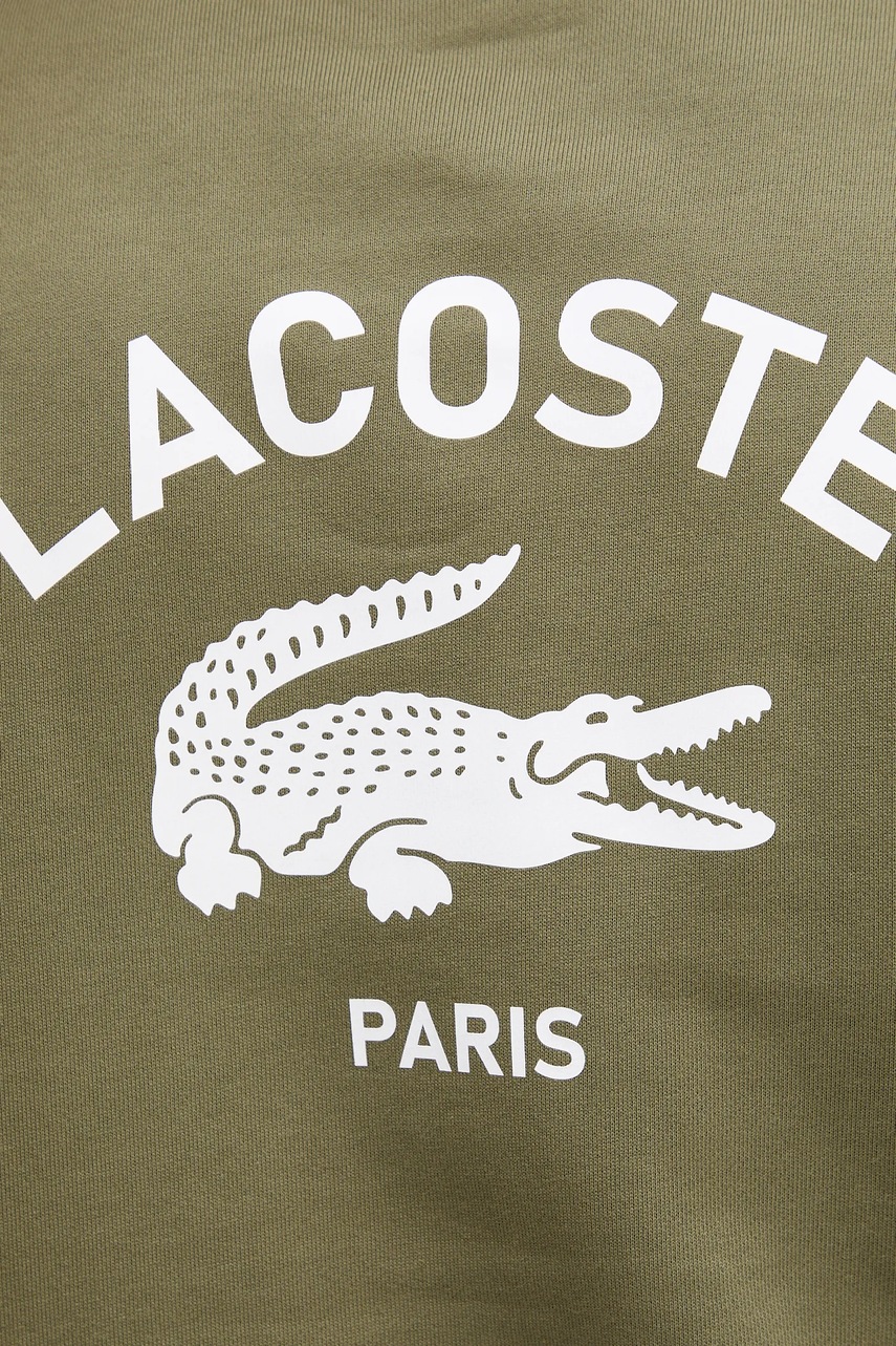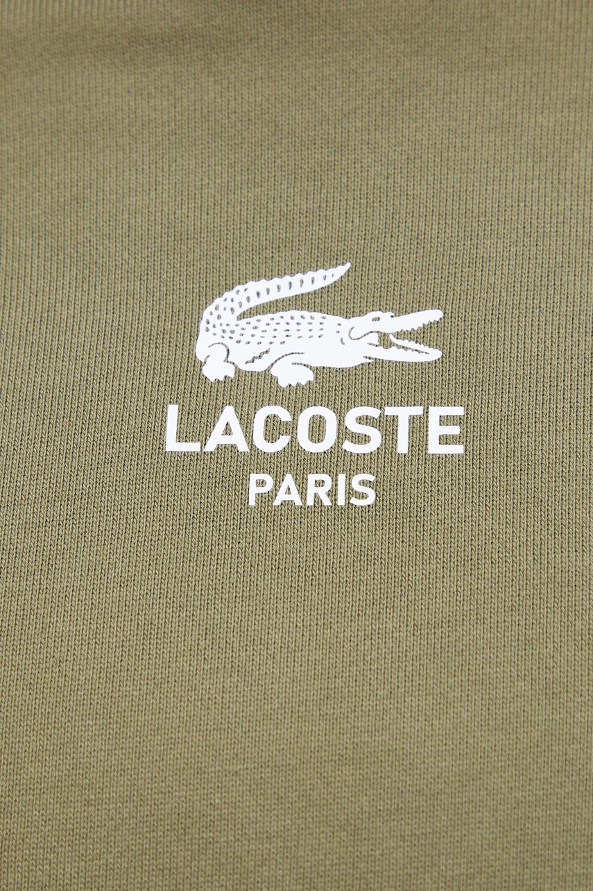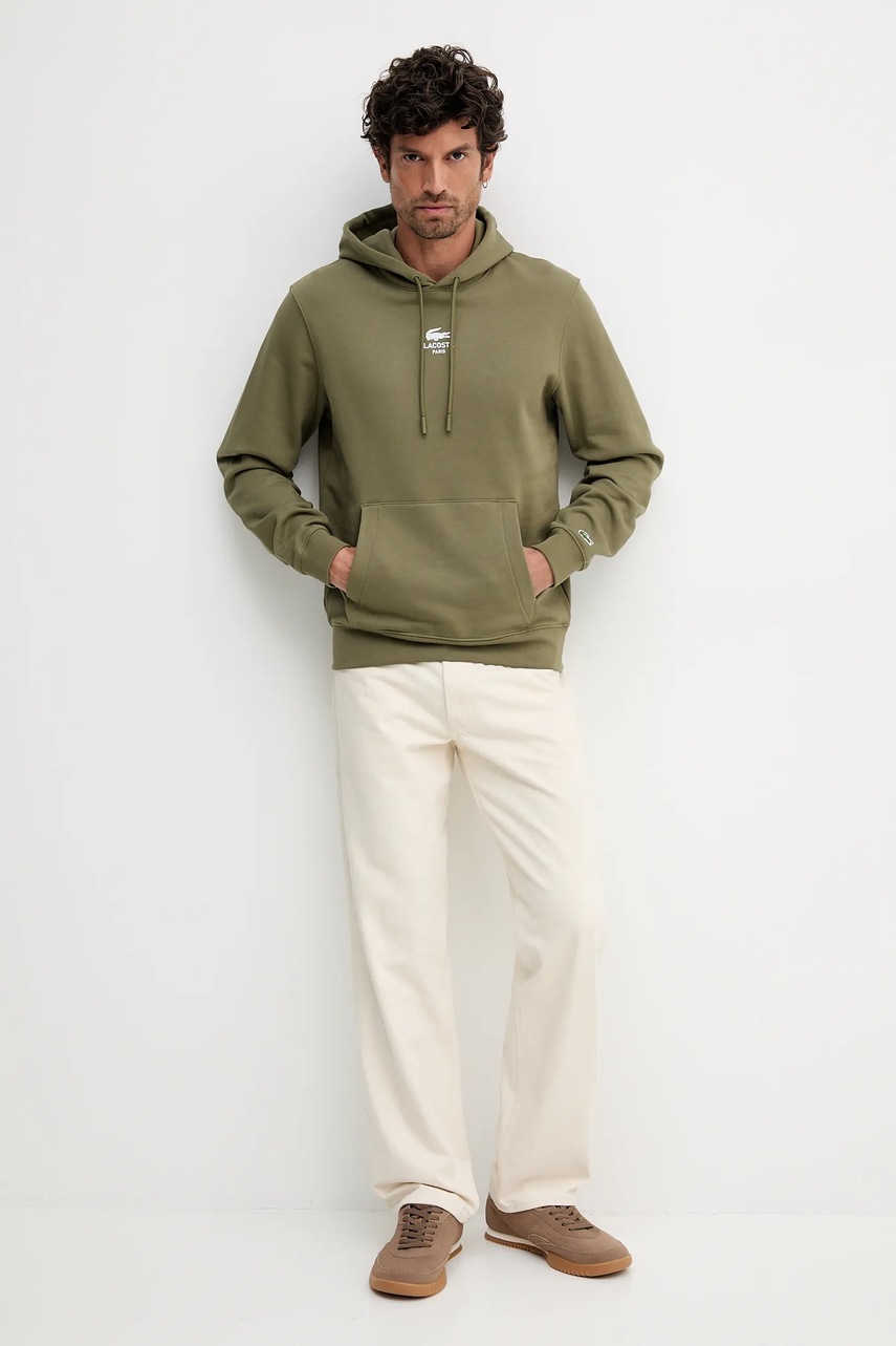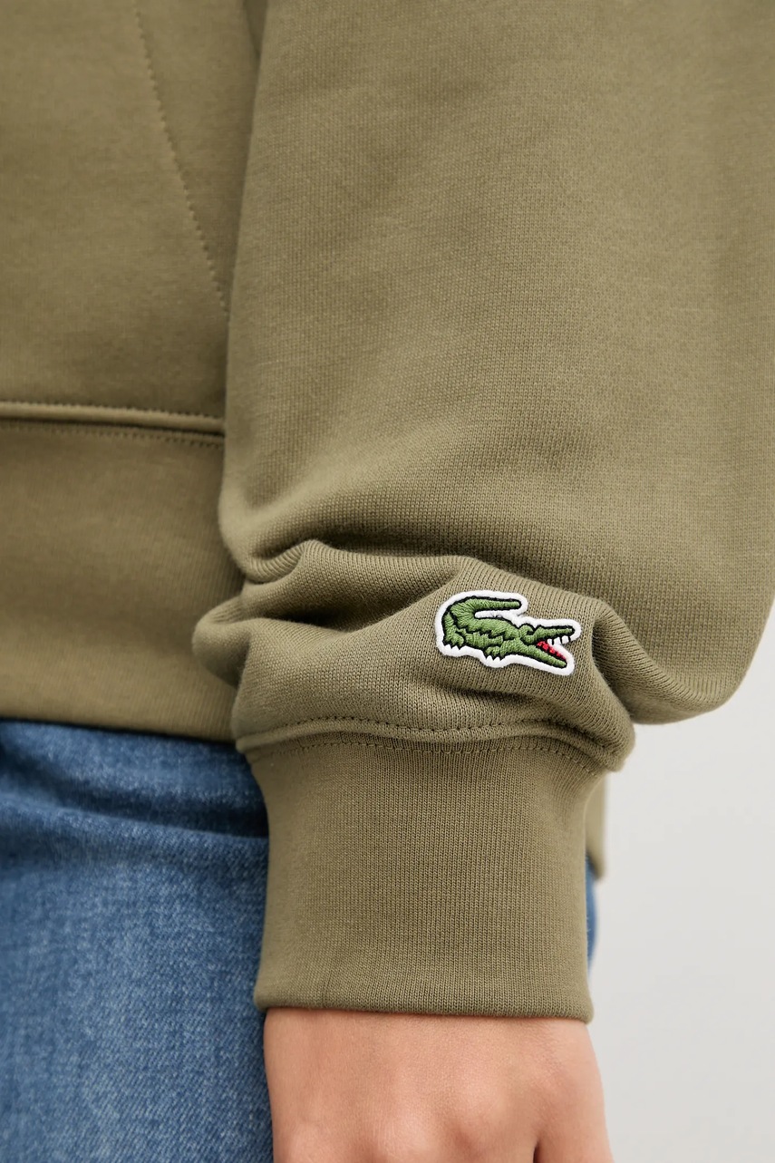 Lacoste bluza bawełniana kolor zielony z kapturem z nadrukiem SH2740