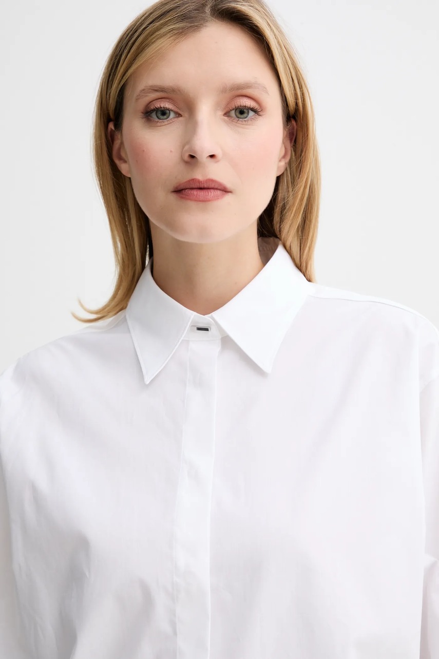 BOSS koszula bawełniana damska kolor biały relaxed z kołnierzykiem klasycznym 50548455