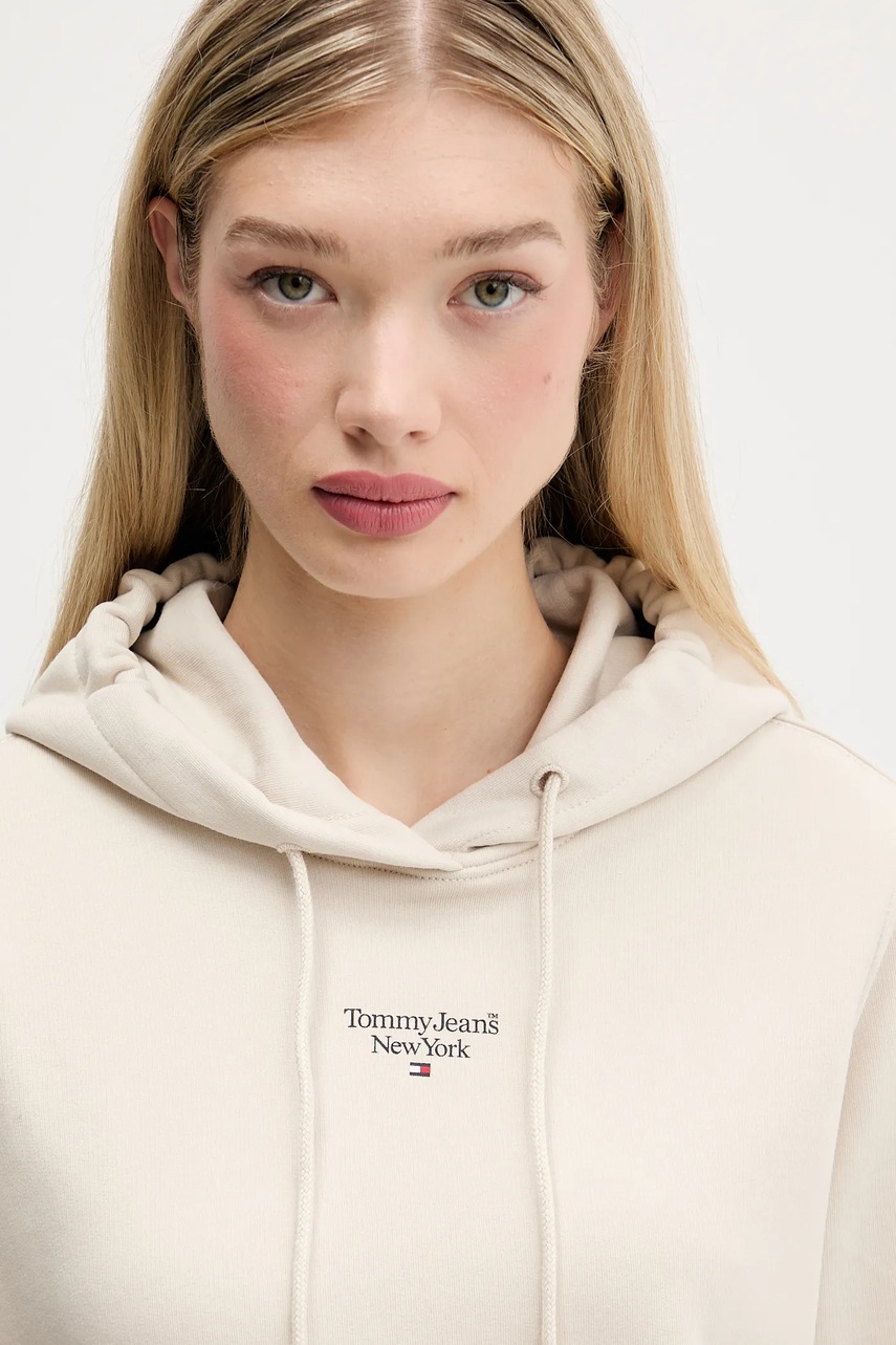 Tommy Jeans bluza damska kolor beżowy z kapturem gładka DW0DW19712
