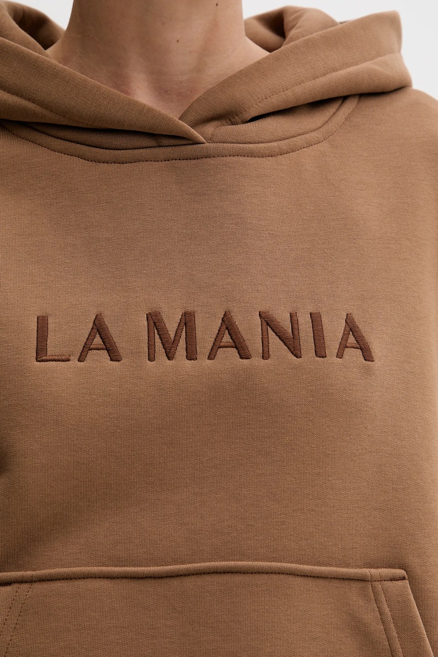 La Mania bluza BROOK damska kolor brązowy z kapturem z aplikacją BROOK