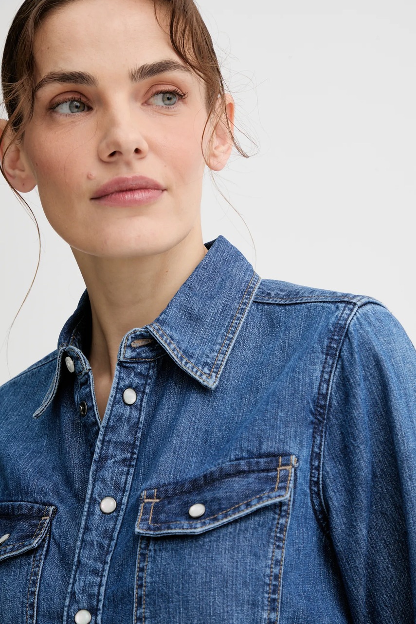 G-Star koszula jeansowa damska kolor niebieski regular z kołnierzykiem klasycznym D27714.D252