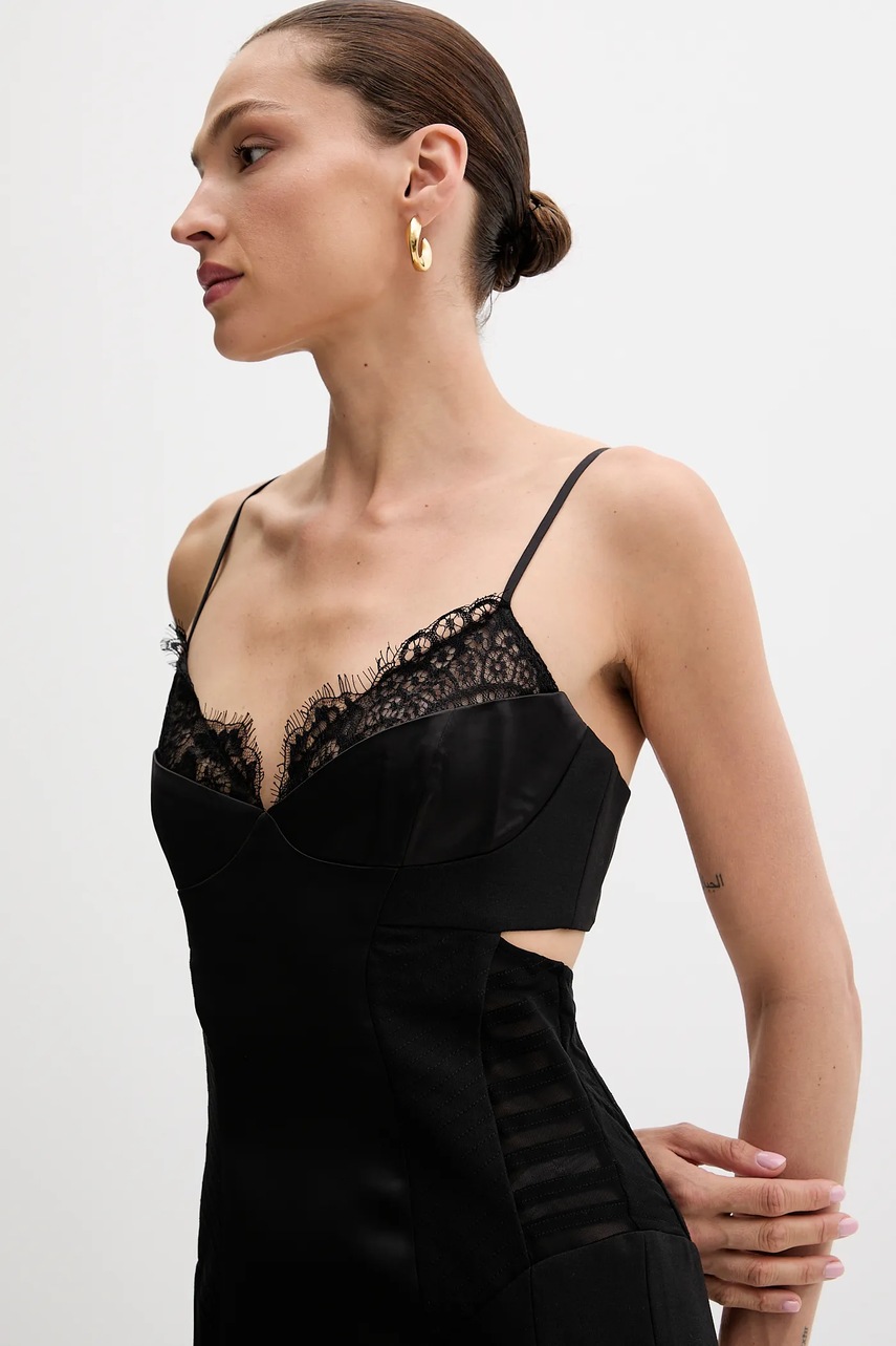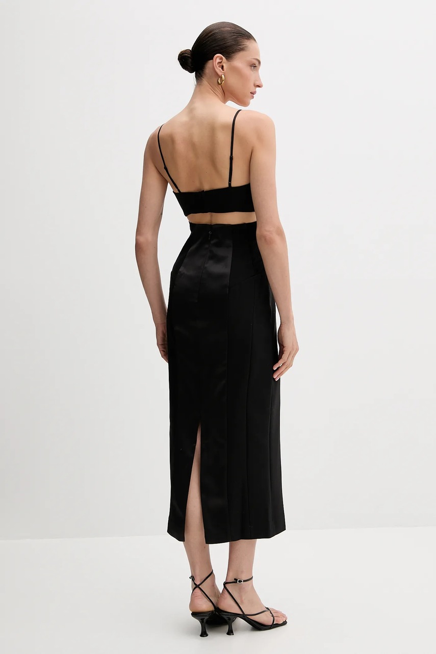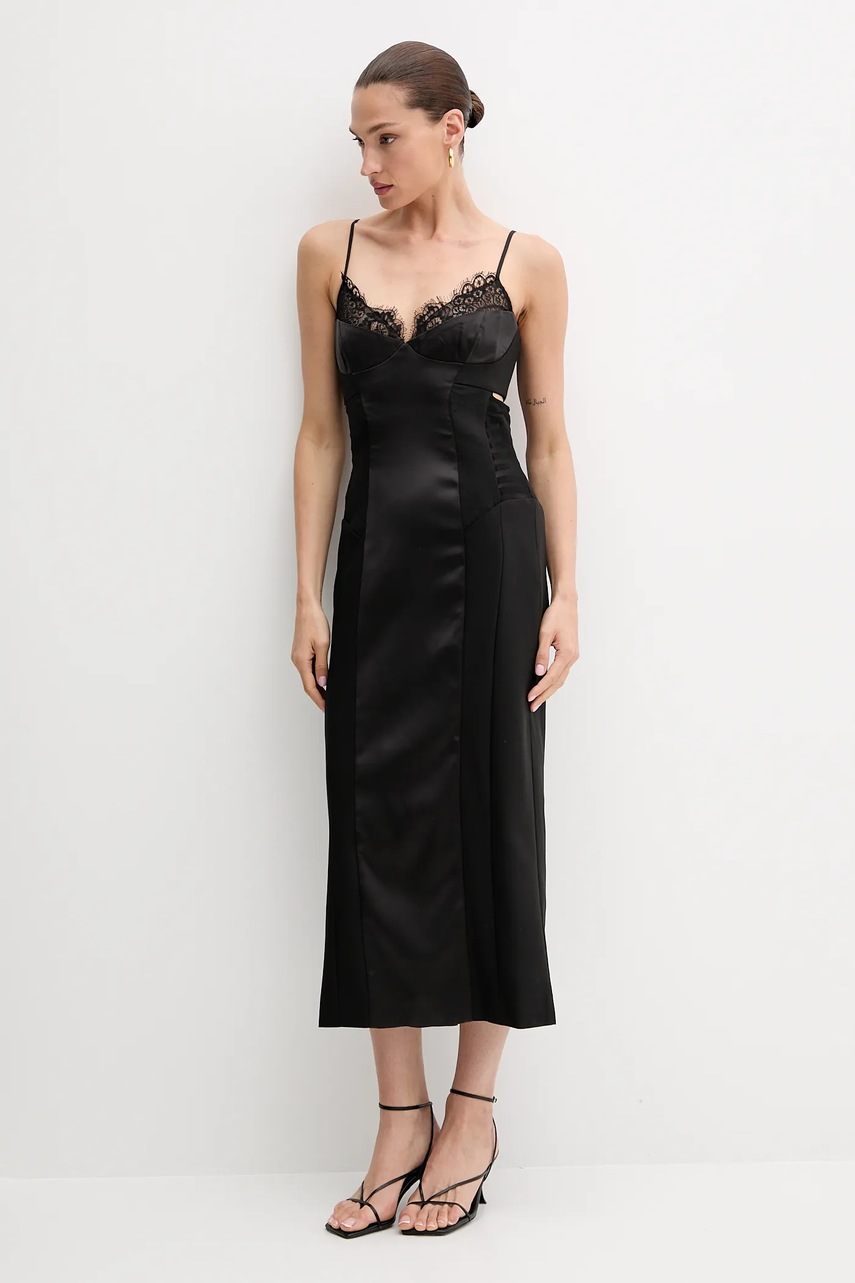 Bardot sukienka kolor czarny midi prosta 60025DB