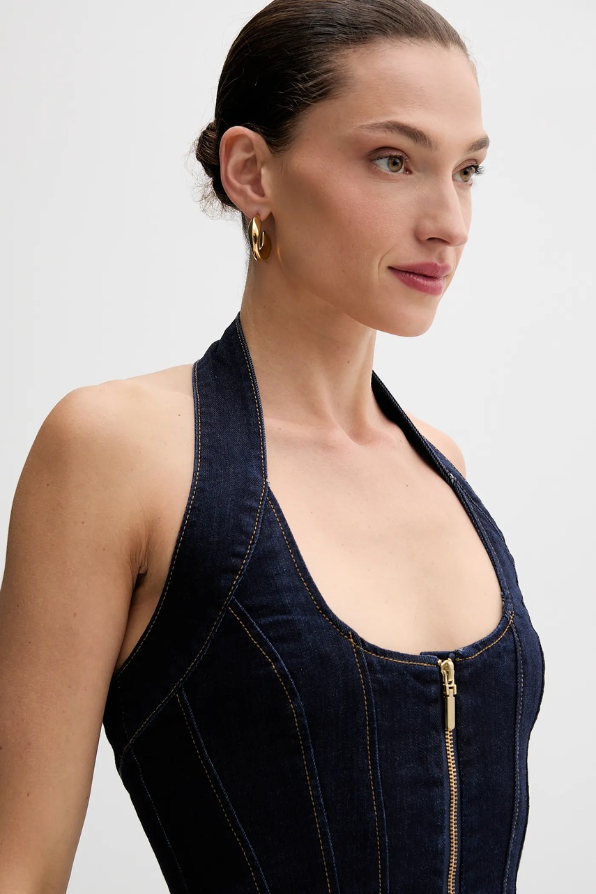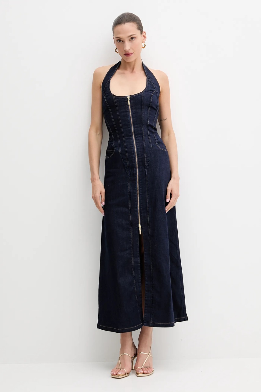 Bardot sukienka jeansowa kolor granatowy maxi rozkloszowana 91426DB