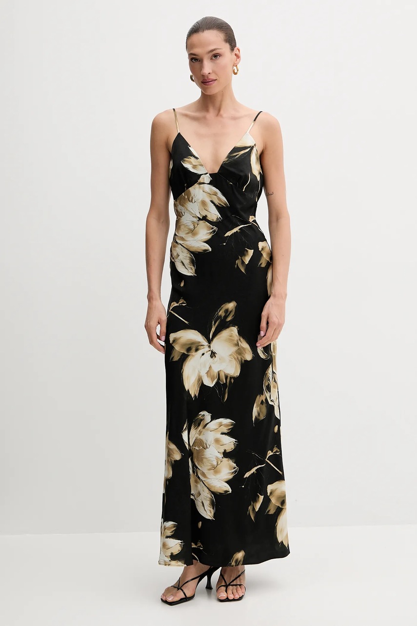 Bardot sukienka kolor czarny maxi prosta 57516DB8
