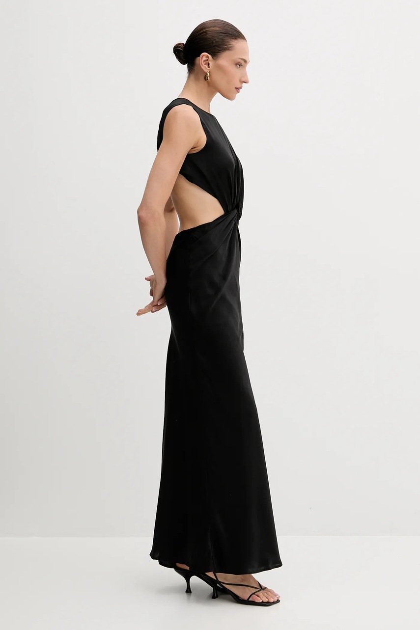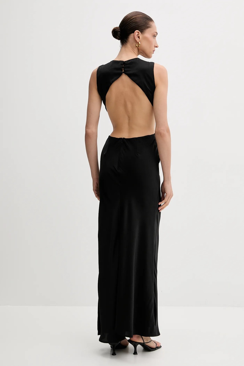 Bardot sukienka kolor czarny maxi prosta 59915DB