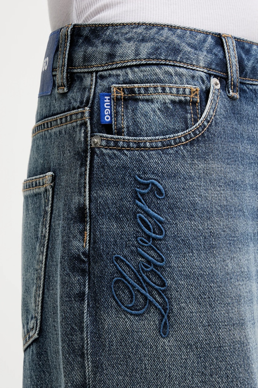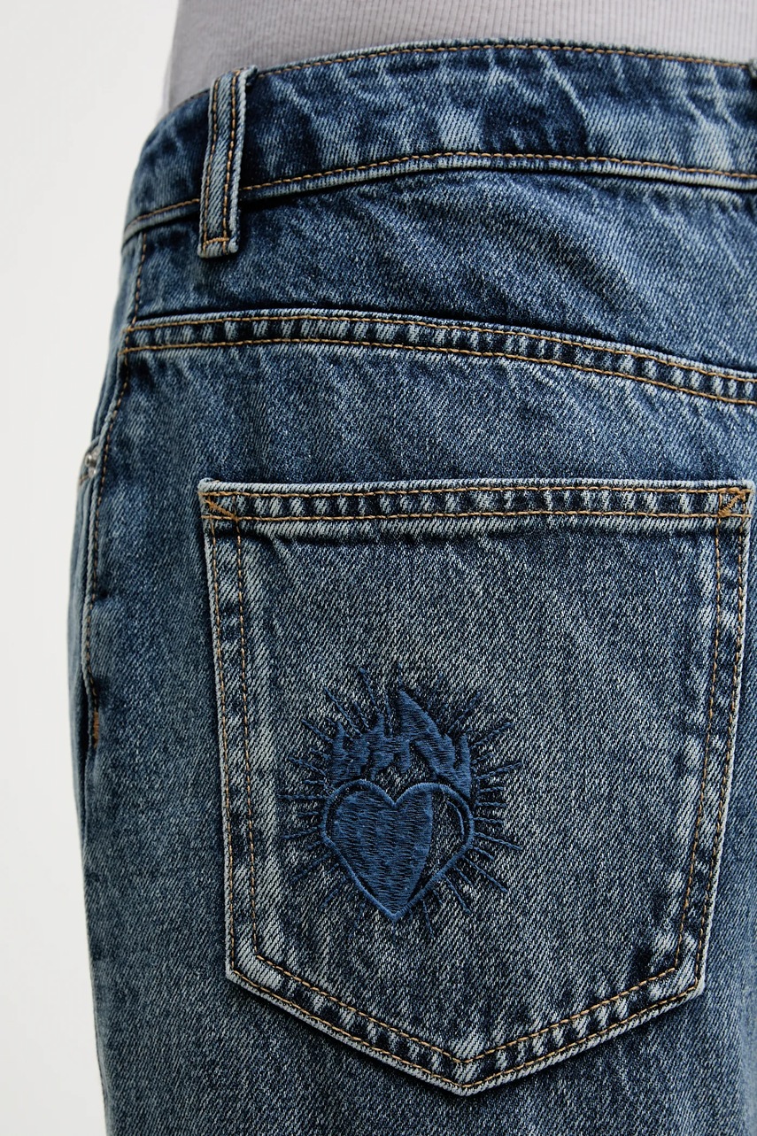 - Model z regularną talią i zapięciem na guzik i suwak.