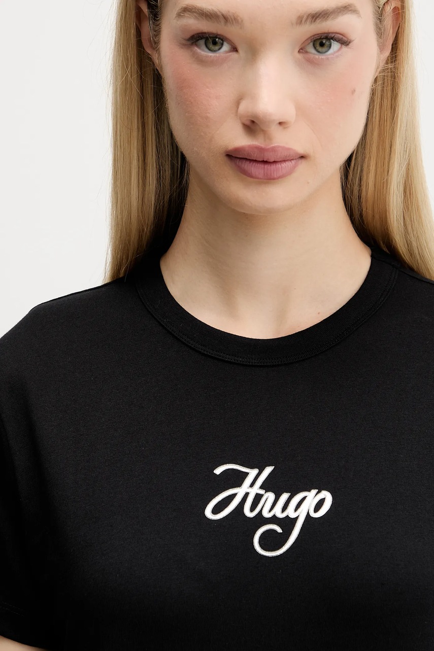 HUGO t-shirt bawełniany damski kolor czarny 50550117