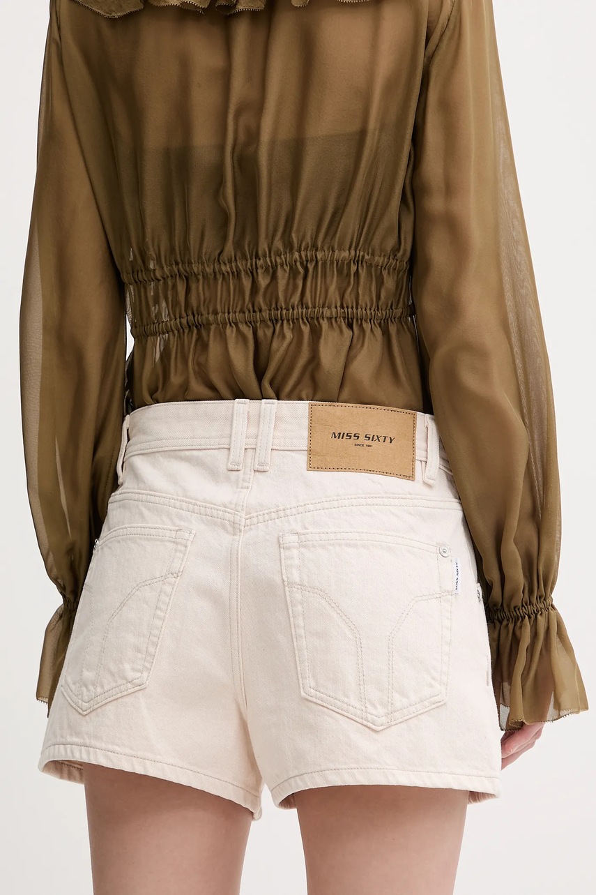 Miss Sixty szorty jeansowe damskie kolor beżowy gładkie high waist 6S2JJ3330T