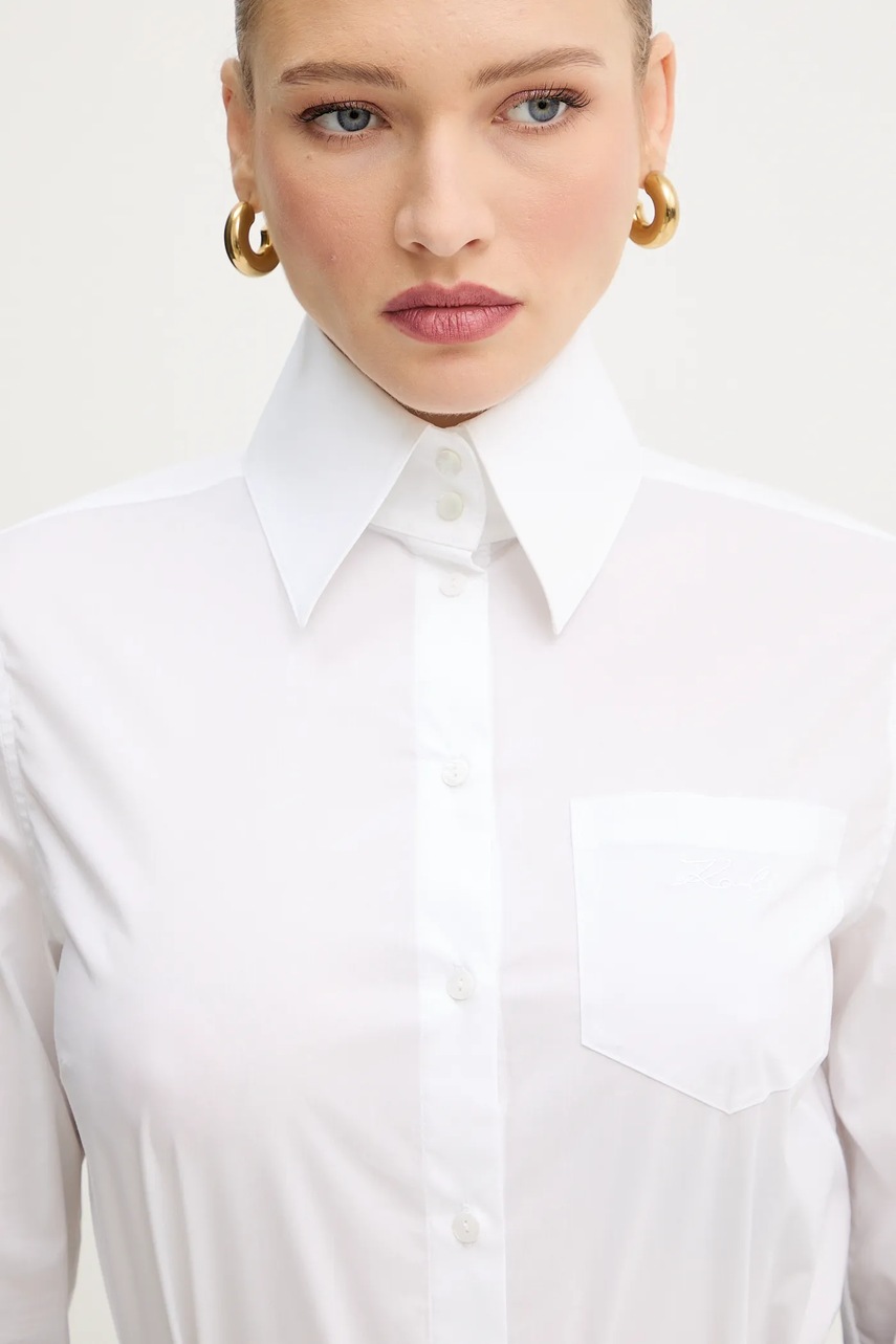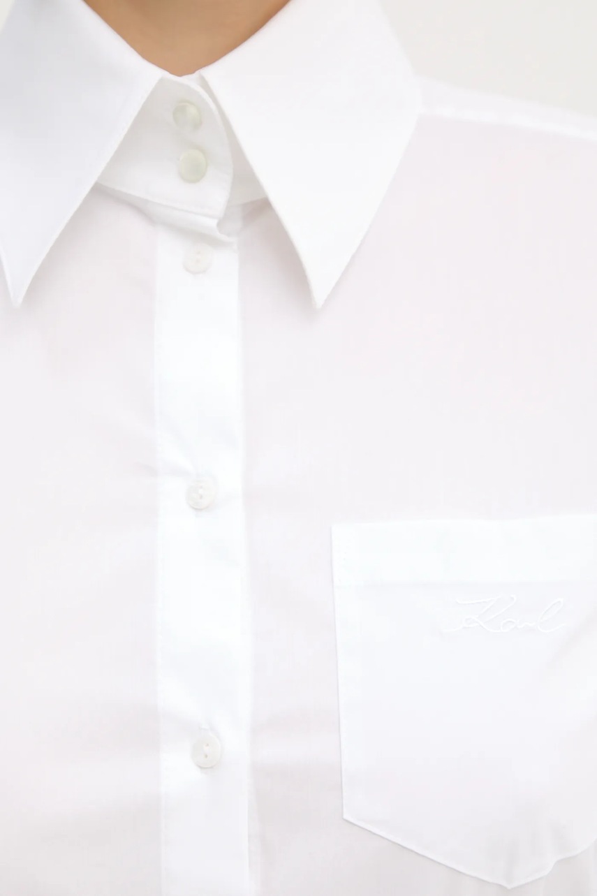 Karl Lagerfeld koszula z dodatkiem bawełny damska kolor biały regular z kołnierzykiem klasycznym A4W11038
