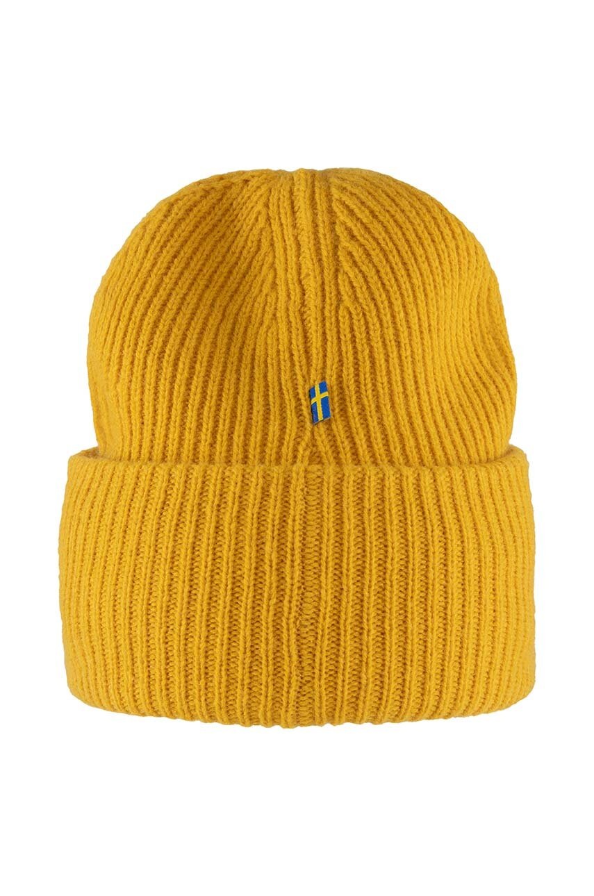 Fjallraven czapka wełniana 1962 Logo kolor żółty z grubej dzianiny wełniana