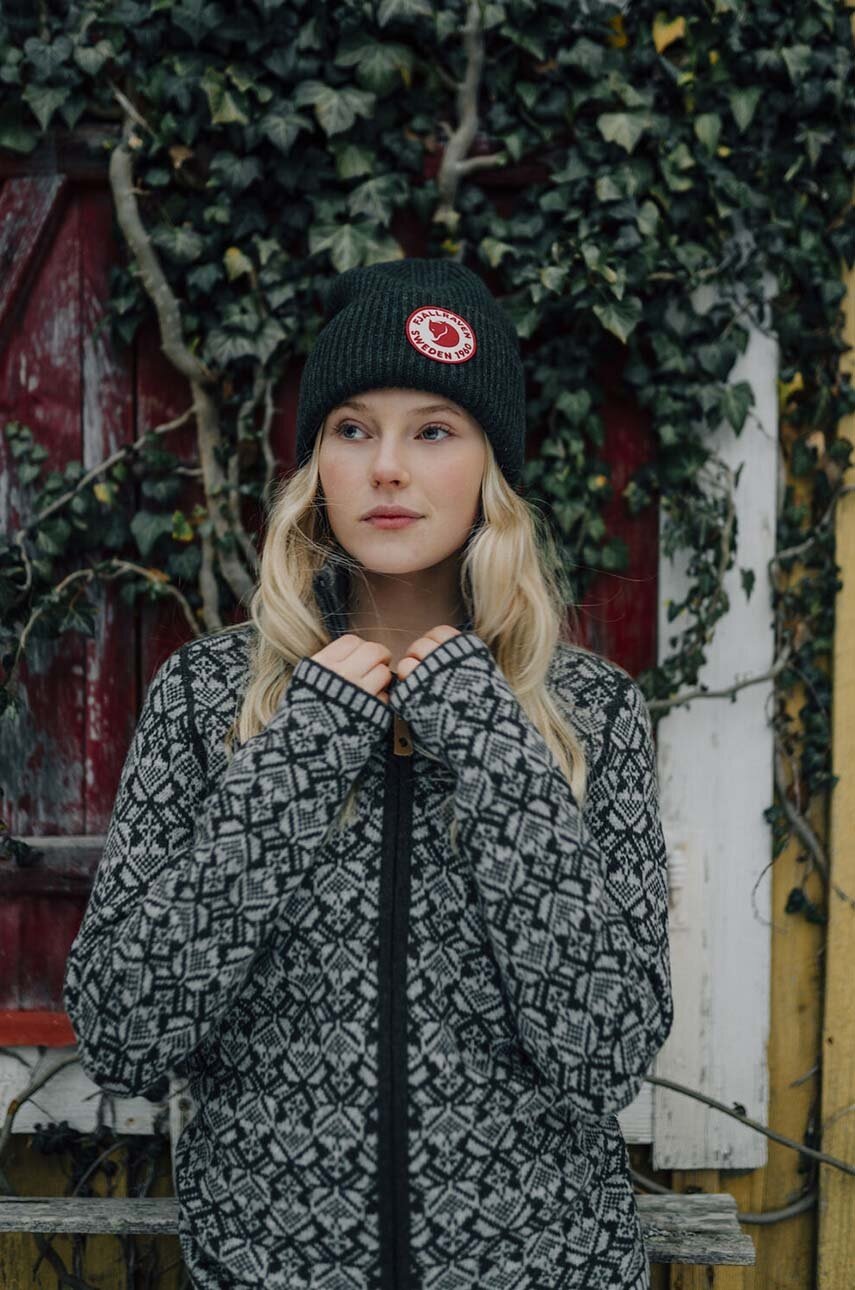 Fjallraven czapka wełniana 1967 Logo kolor zielony z grubej dzianiny wełniana