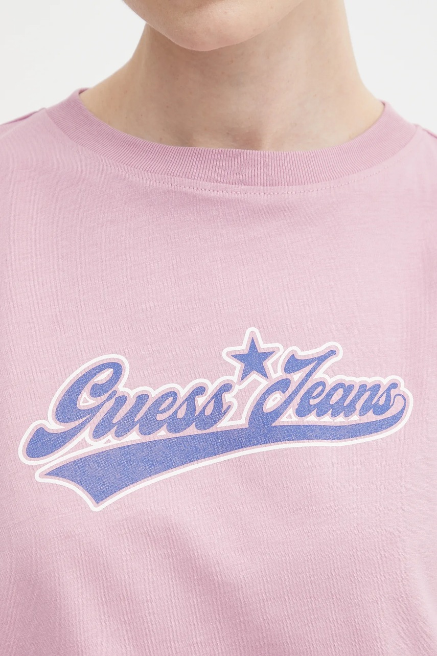 Guess Jeans t-shirt bawełniany damski kolor fioletowy W5BI31 K8HM0