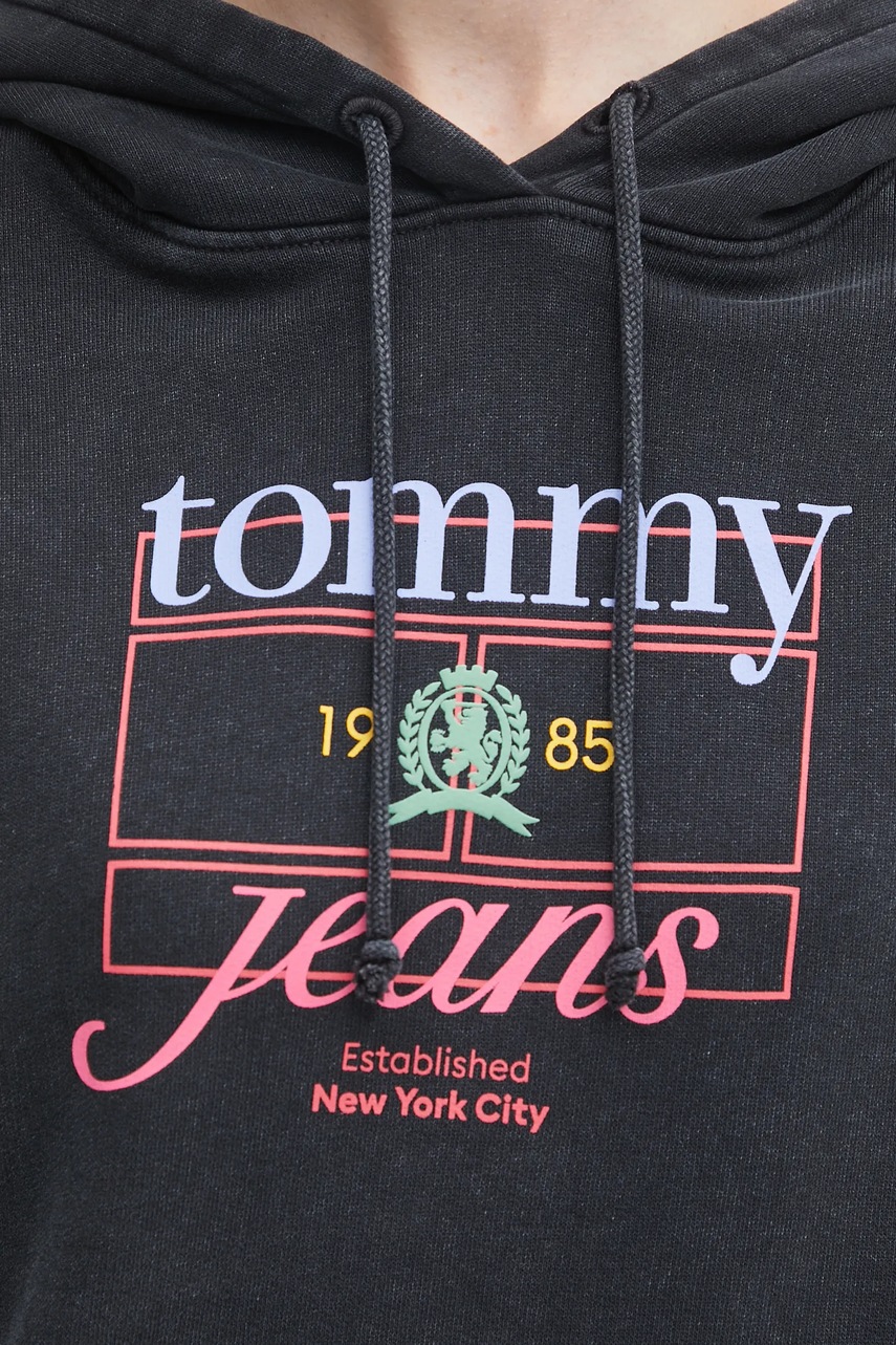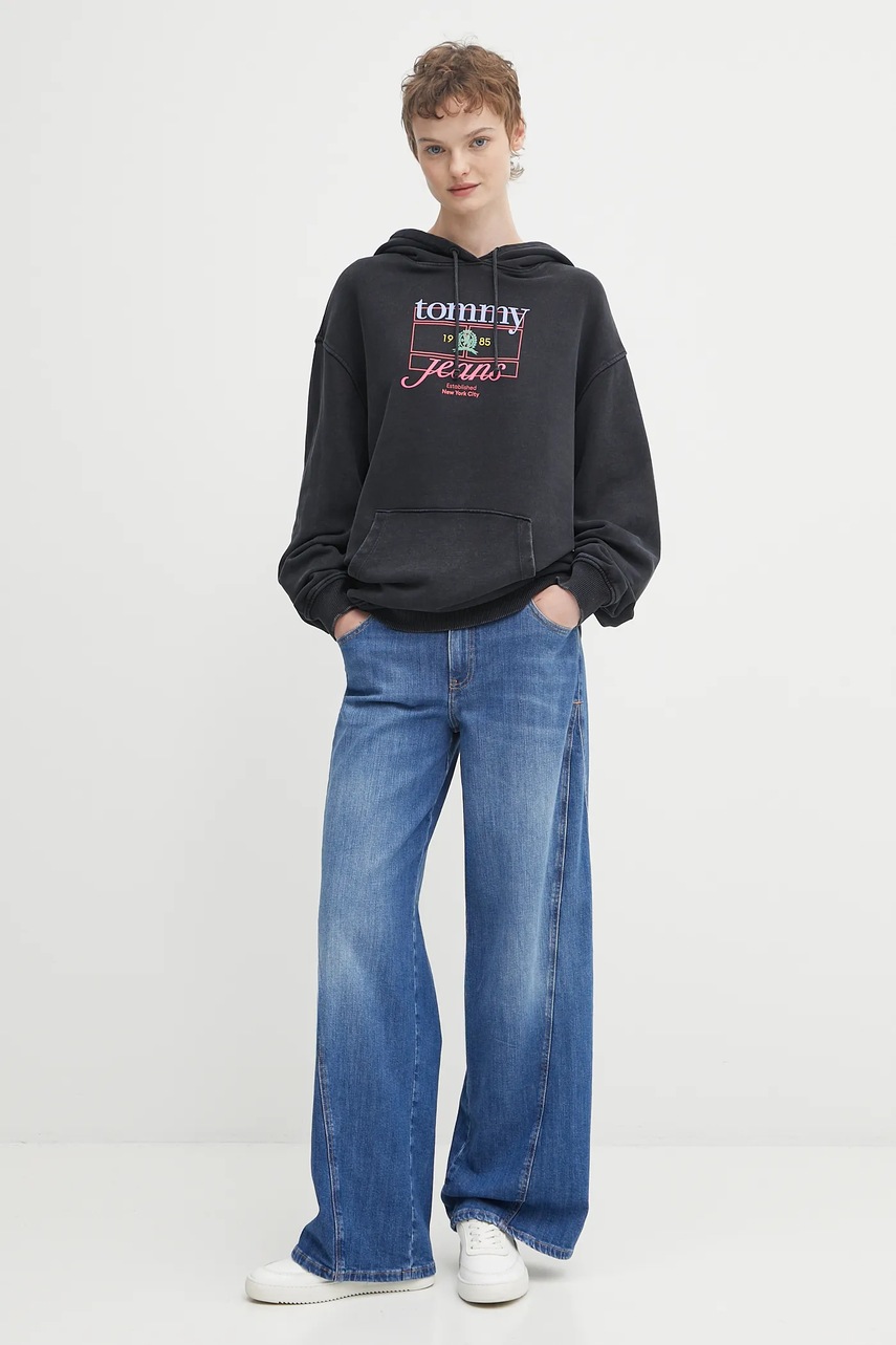 Tommy Jeans bluza bawełniana damska kolor czarny z kapturem z nadrukiem DW0DW22169