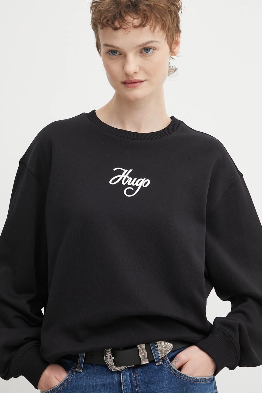 HUGO bluza bawełniana damska kolor czarny z nadrukiem 50550149
