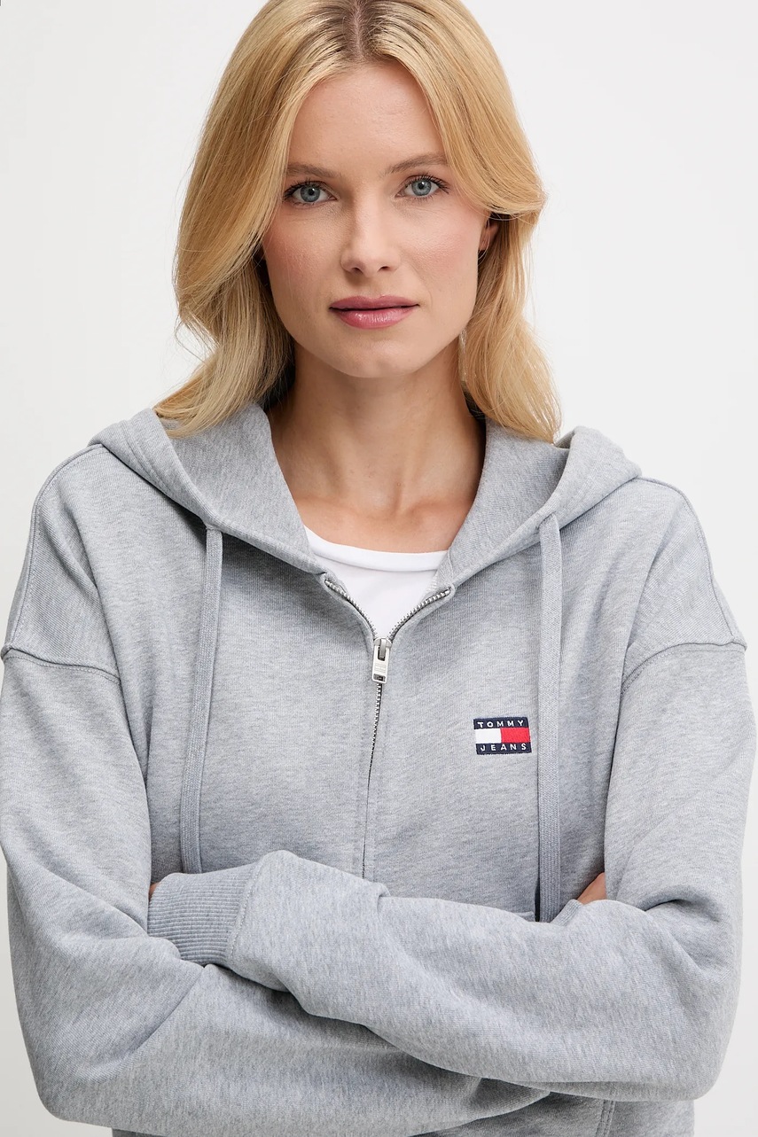 Tommy Jeans bluza bawełniana damska kolor szary z kapturem z aplikacją DW0DW21147