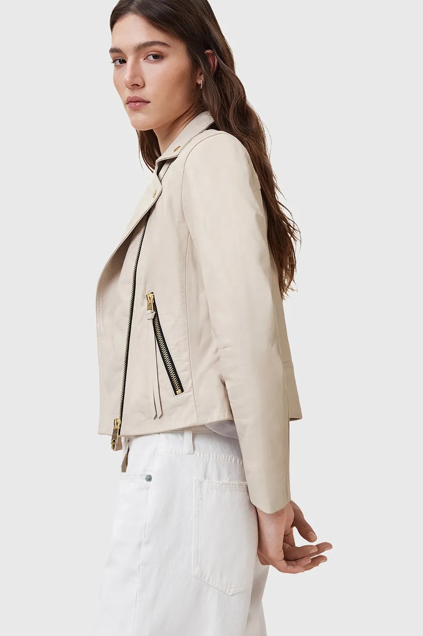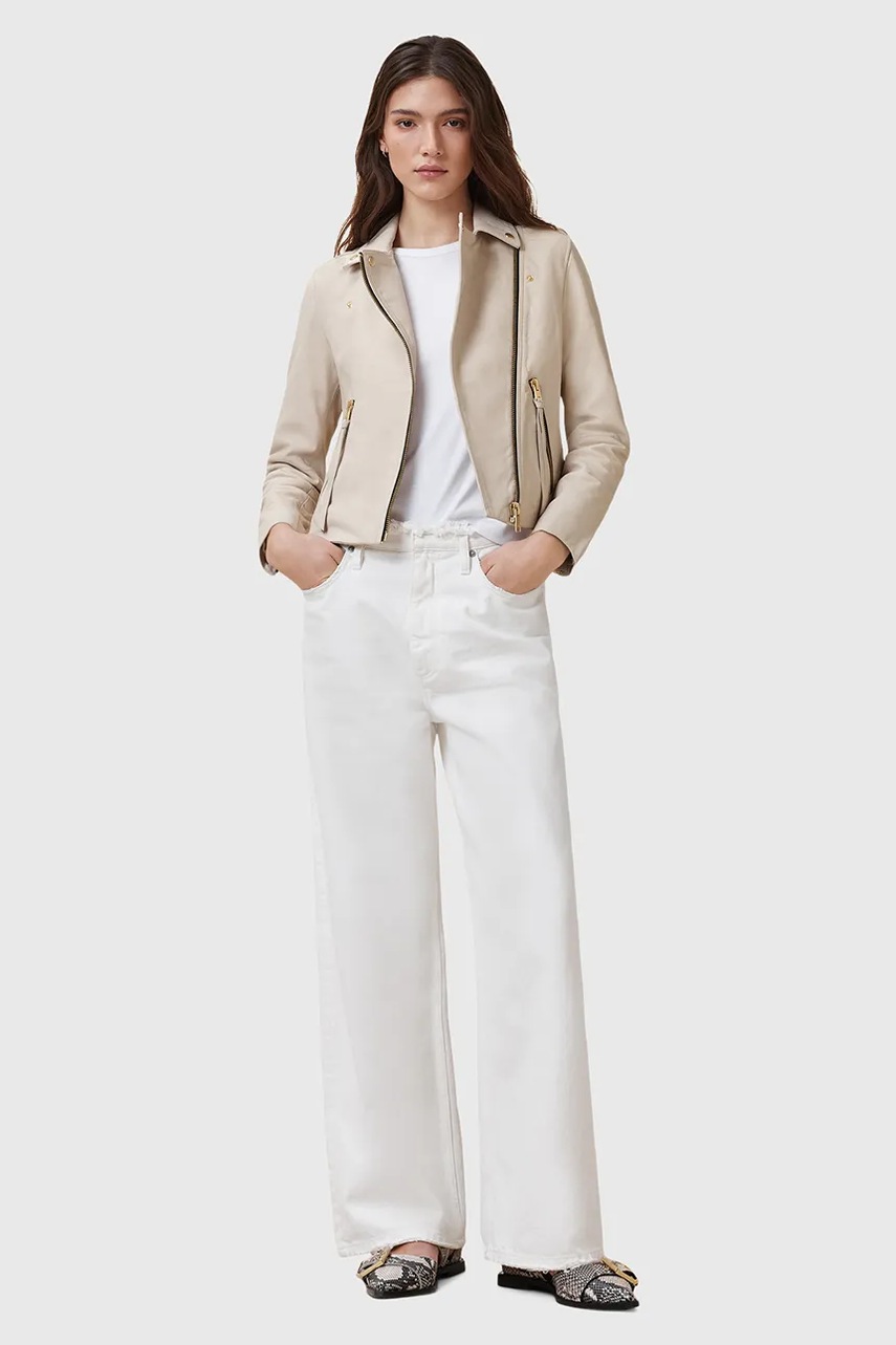 AllSaints ramoneska skórzana DALBY kolor biały przejściowa W087LB