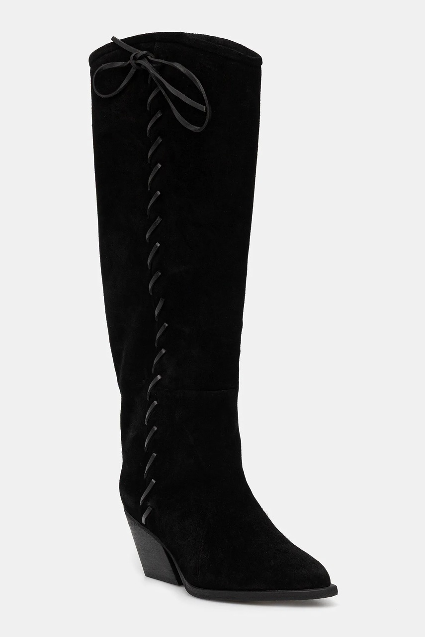 Answear.LAB kozaki zamszowe kolor czarny na słupku