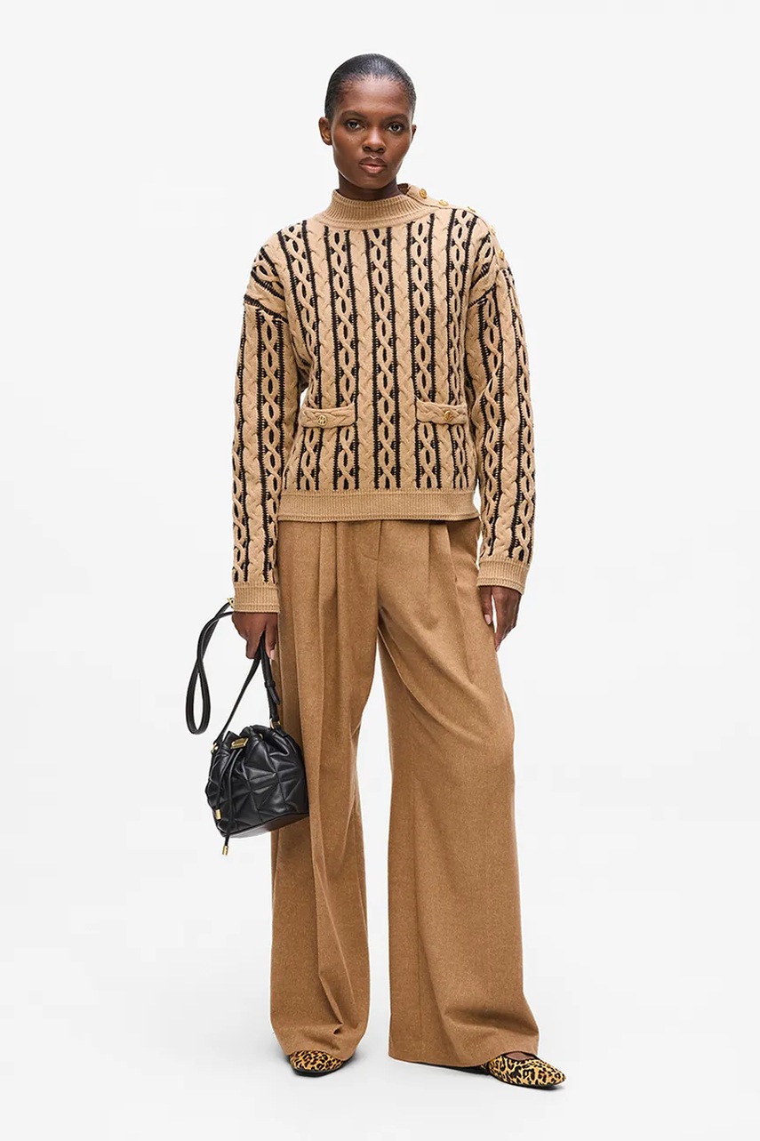 Karl Lagerfeld sweter z dodatkiem wełny damski kolor brązowy ciepły z półgolfem A4W18039