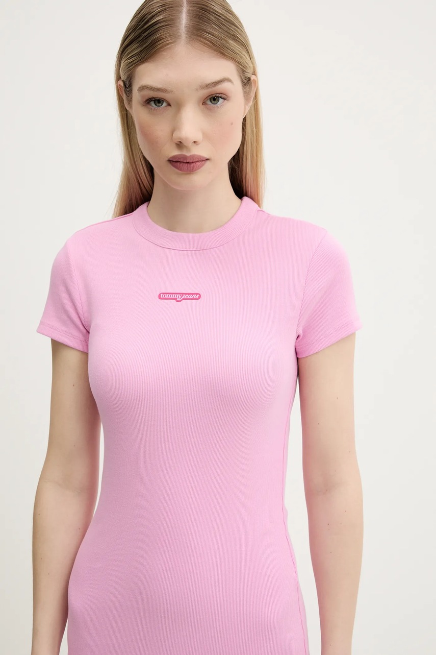 Tommy Jeans sukienka kolor różowy mini dopasowana DW0DW21186