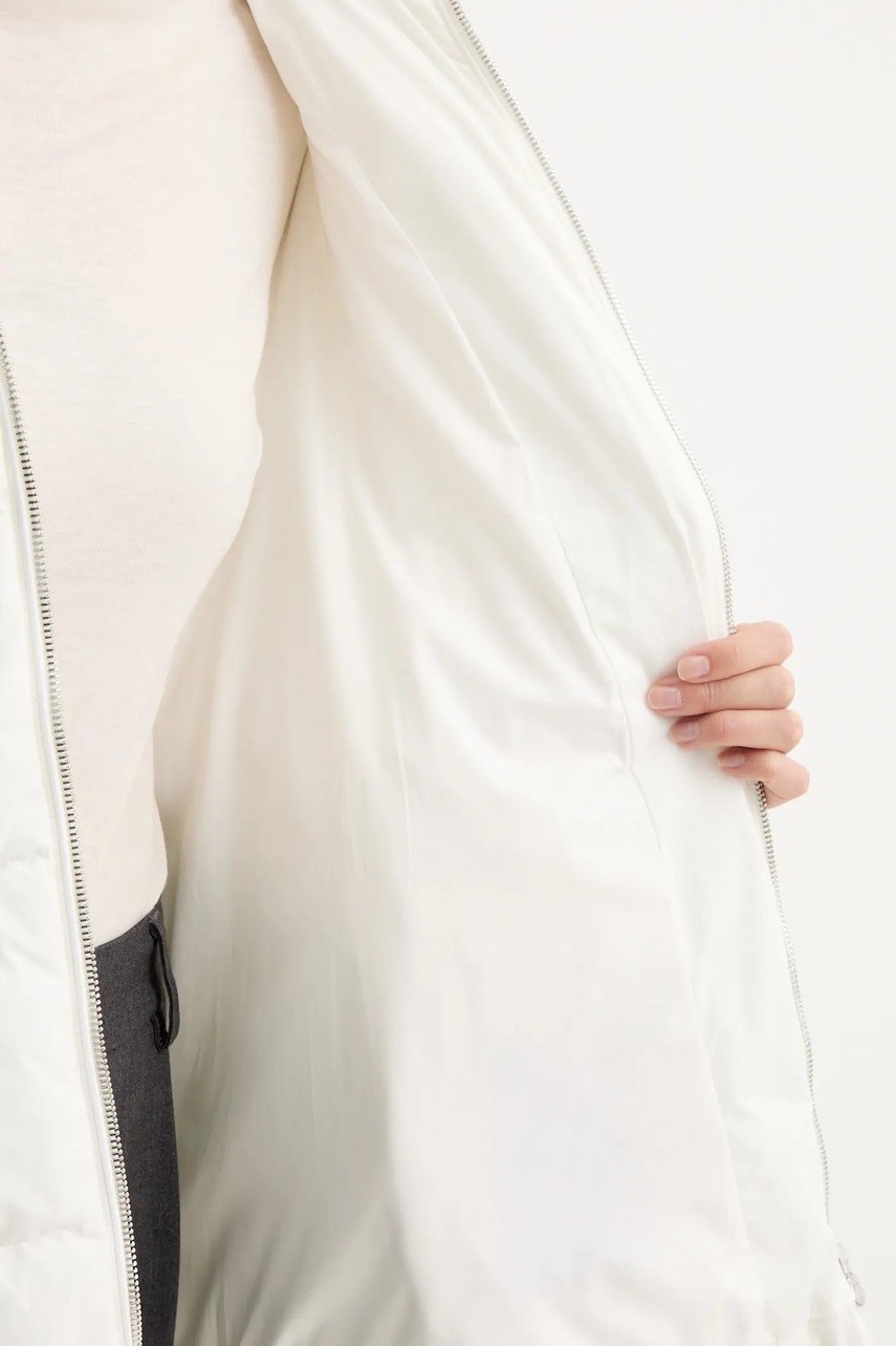 - Podwyższony kołnierz i nieodpinany kaptur gwarantują dodatkową ochronę przed chłodem.