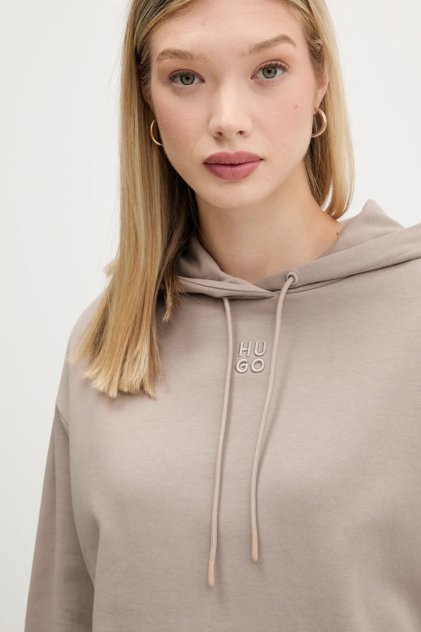 HUGO bluza bawełniana damska kolor beżowy z kapturem z aplikacją 50522423