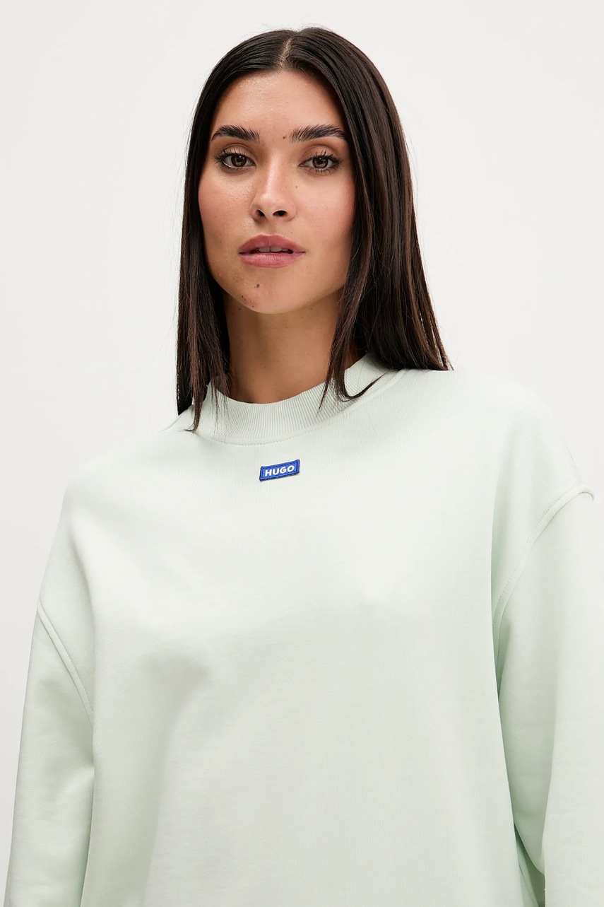 Hugo Blue bluza bawełniana damska kolor zielony z aplikacją 50534344