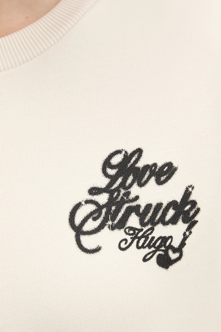 Hugo Blue bluza bawełniana damska kolor beżowy z nadrukiem 50550142