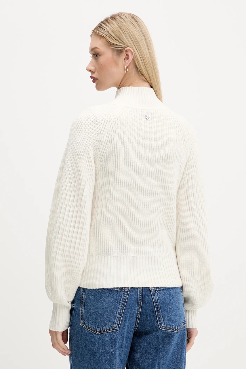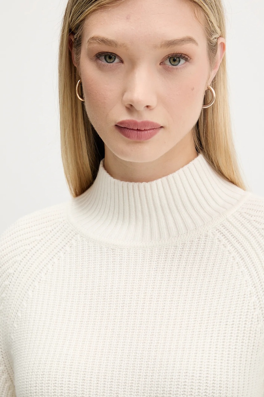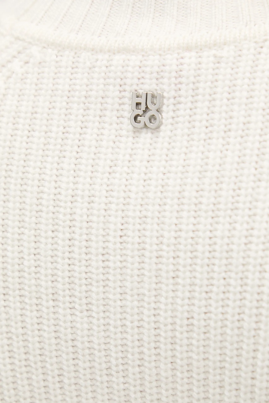 HUGO sweter z wełną damski kolor beżowy z półgolfem 50548292