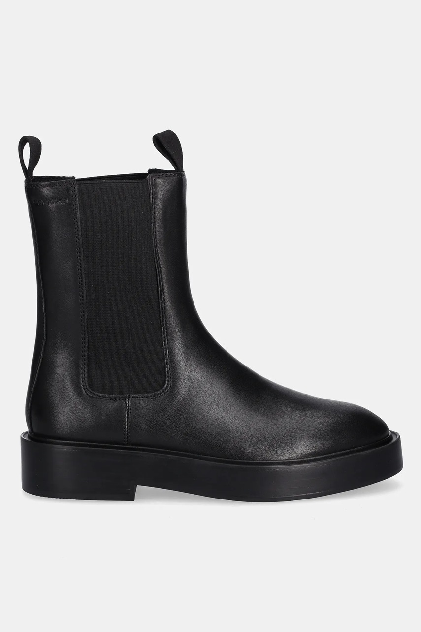Calvin Klein sztyblety skórzane CONVATE WELT CHELSEA LTH damskie kolor czarny na płaskim obcasie YW0YW01905