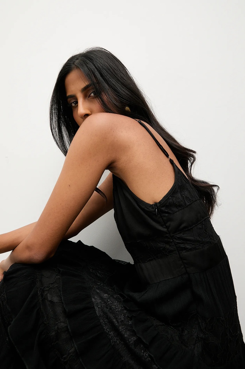 - Model z ozdobnymi falbanami.