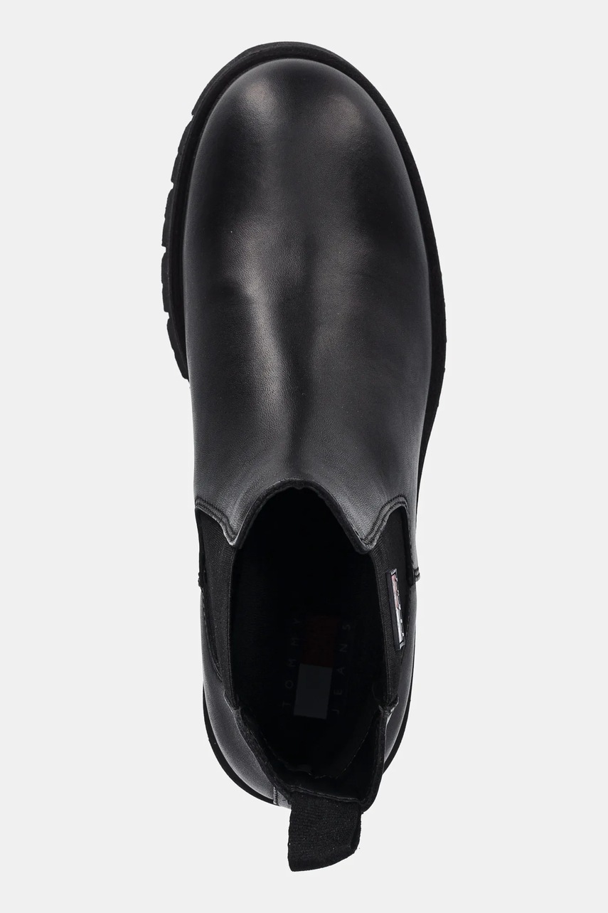 Tommy Jeans sztyblety TJW CHELSEA LEATHER BOOT damskie kolor czarny na płaskim obcasie EN0EN02825