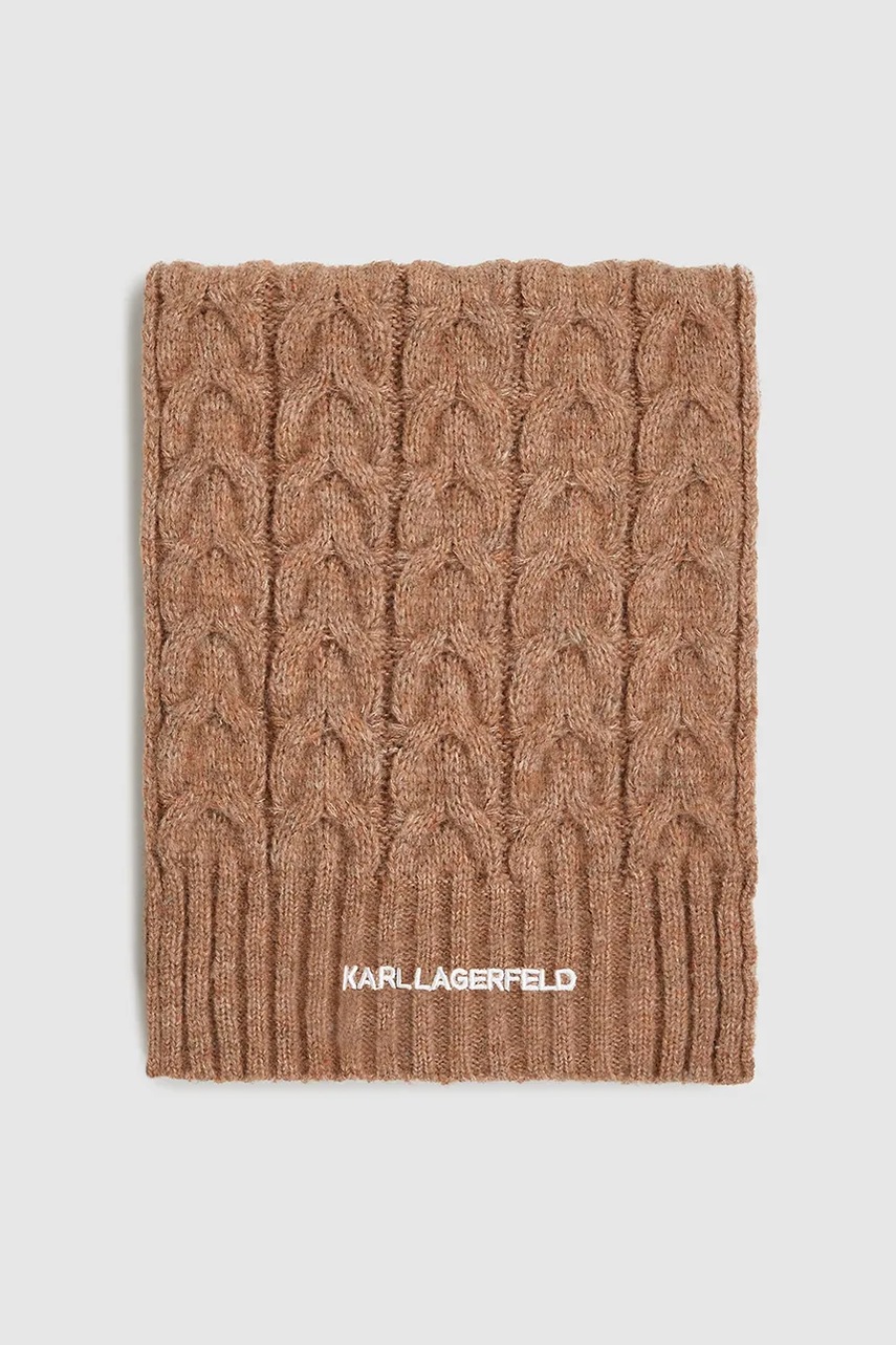Karl Lagerfeld szalik z domieszką wełny K/ESSENTIAL damski kolor beżowy gładki A4W33029