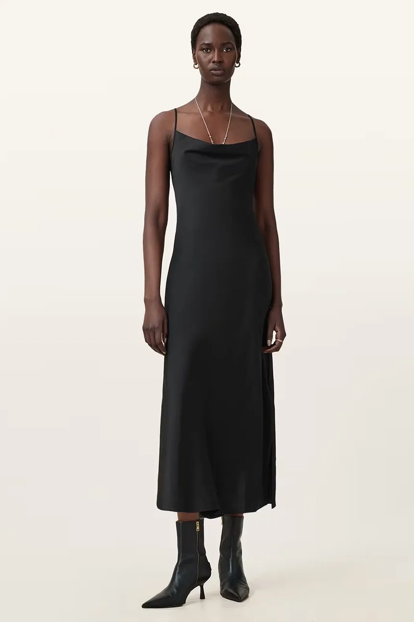 AllSaints sukienka HADLEY kolor czarny midi dopasowana W033DZ
