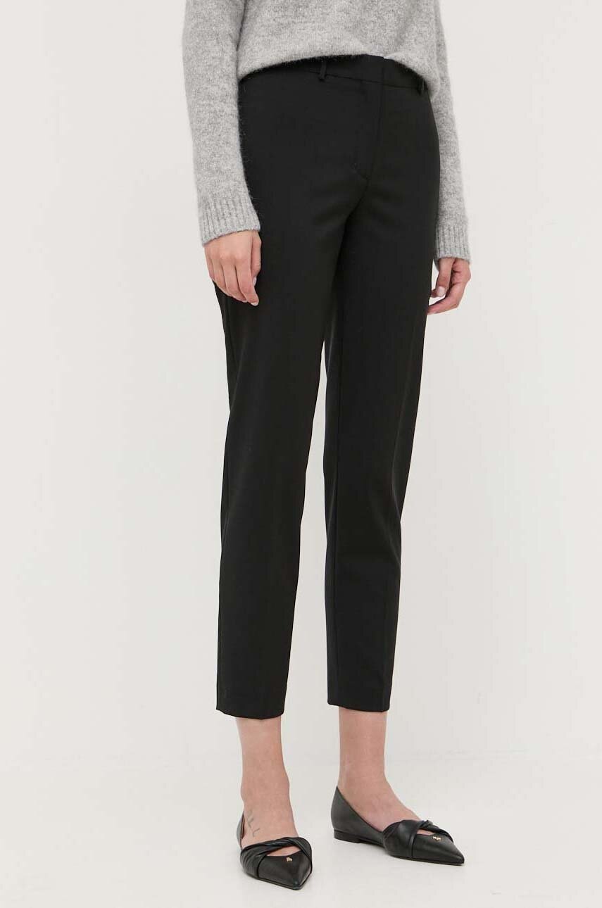 BOSS spodnie wełniane kolor czarny fason cygaretki high waist