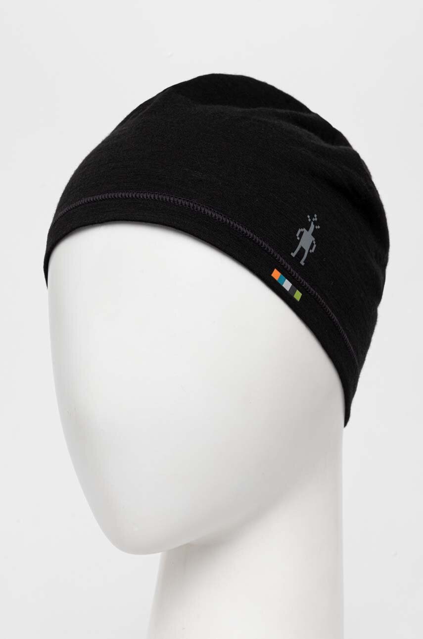 Smartwool czapka Merino kolor czarny z cienkiej dzianiny wełniana