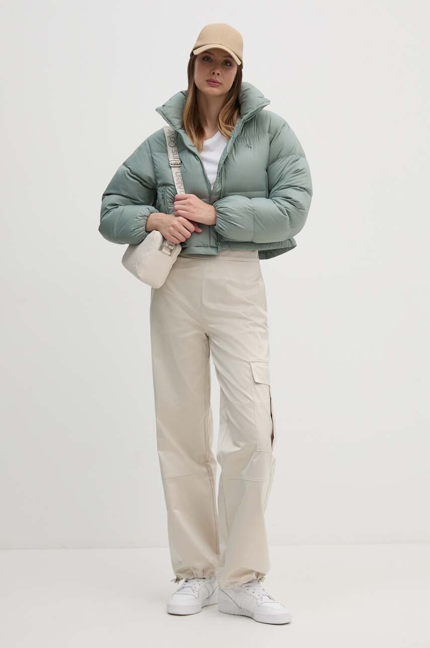 Calvin Klein Jeans spodnie damskie kolor beżowy szerokie high waist J20J223921