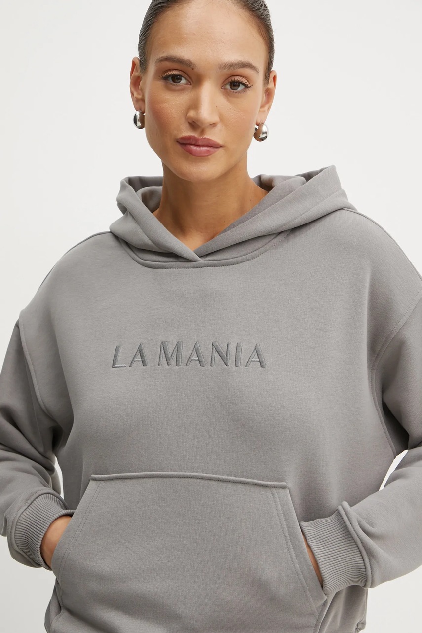 La Mania bluza BROOK damska kolor szary z kapturem z aplikacją BROOK