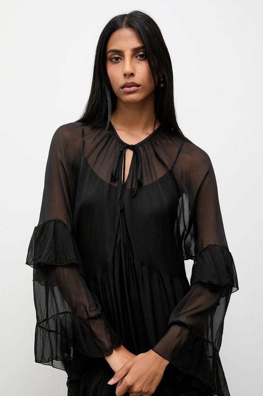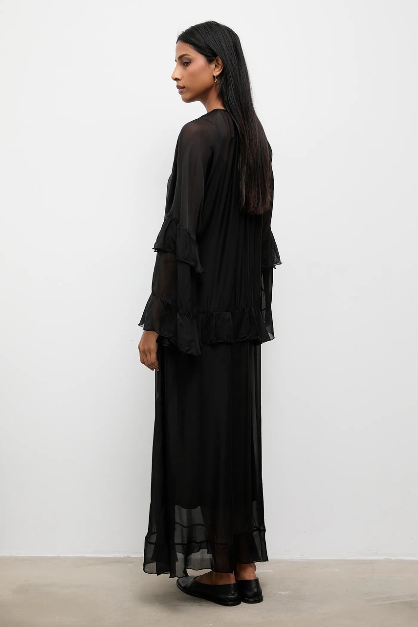 Answear.LAB sukienka z jedwabiem kolor czarny maxi prosta