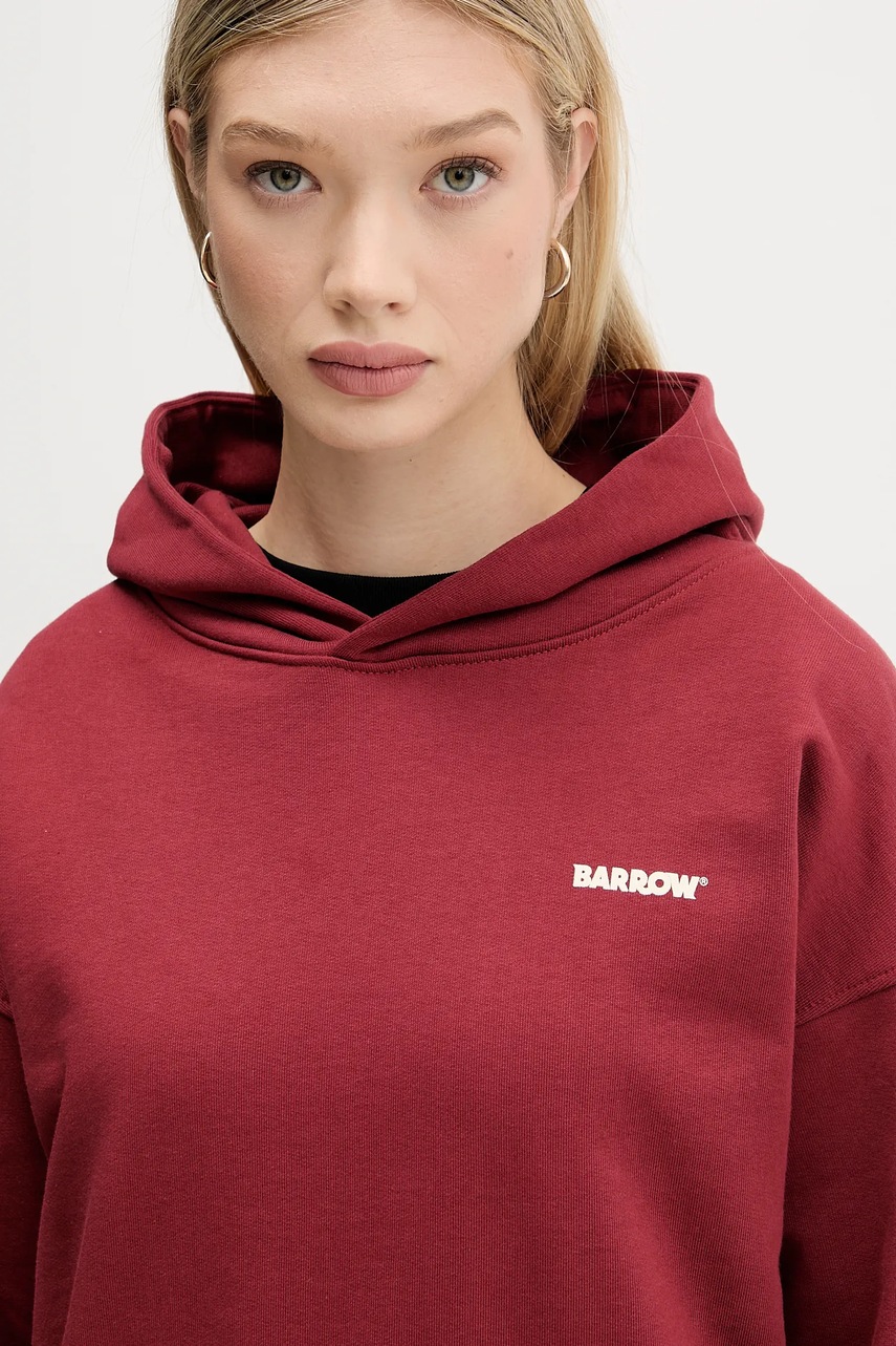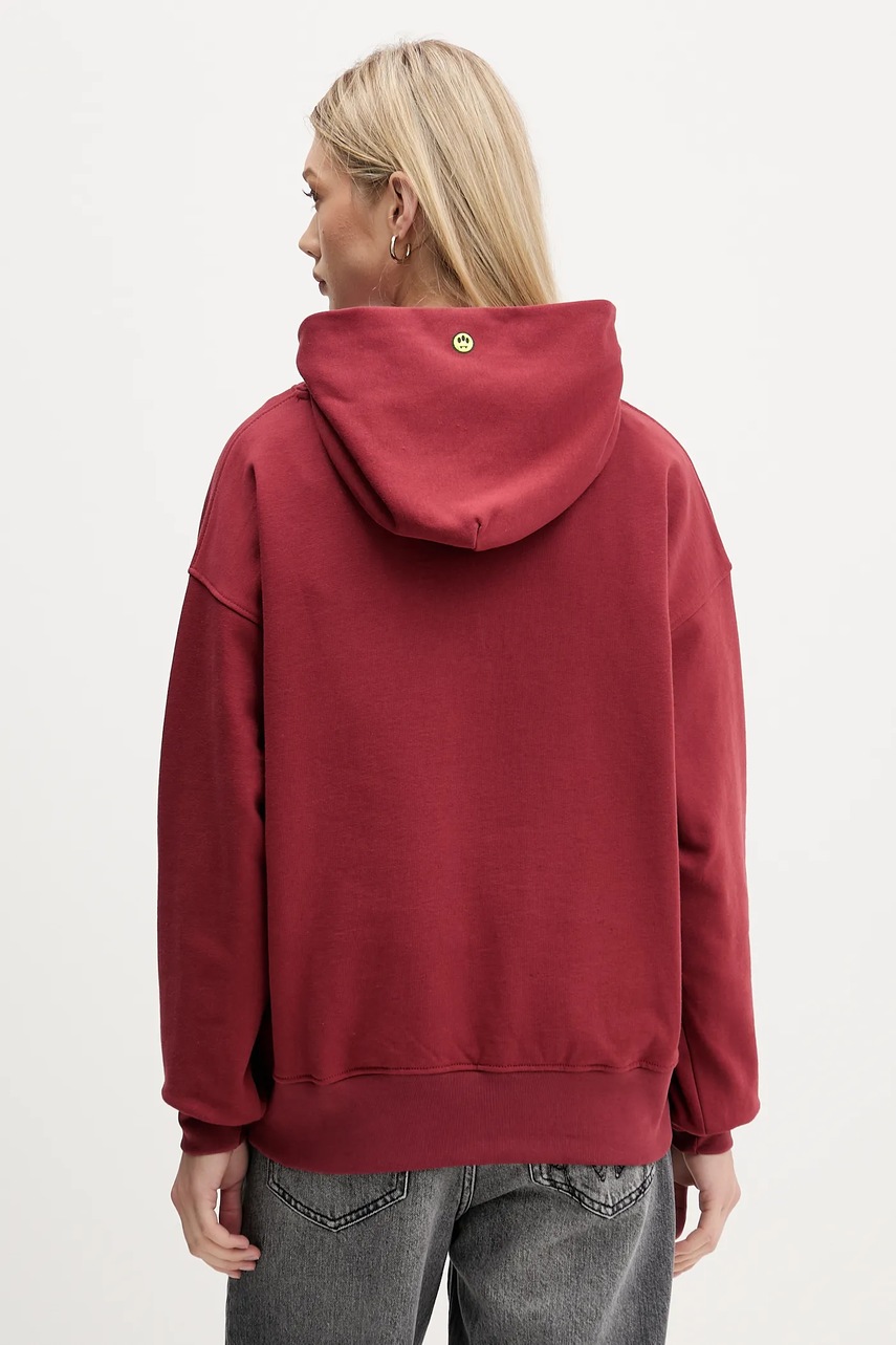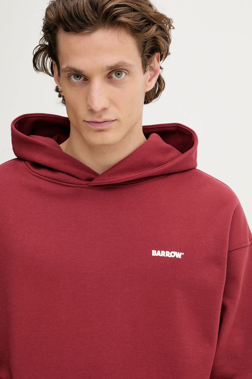 Barrow bluza bawełniana kolor bordowy z kapturem z nadrukiem F5BWUAHS068