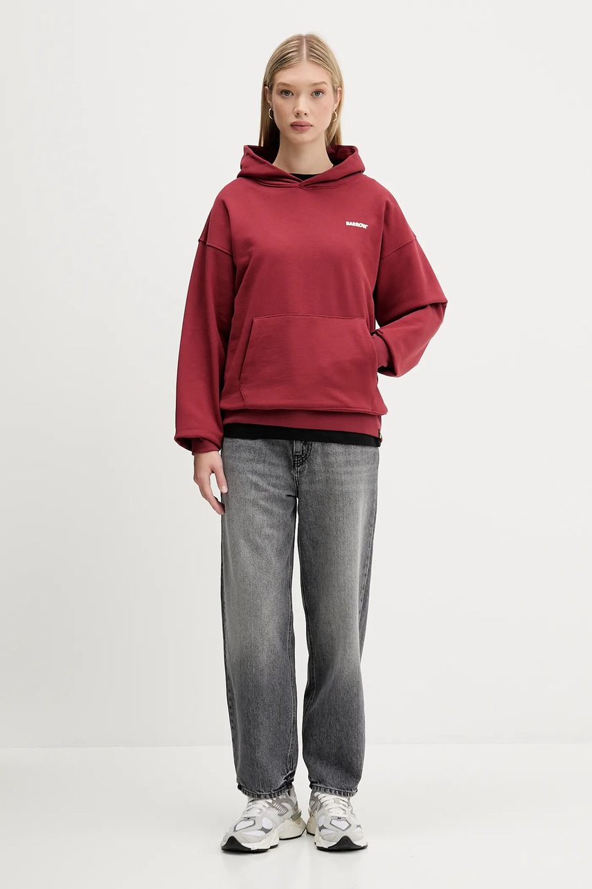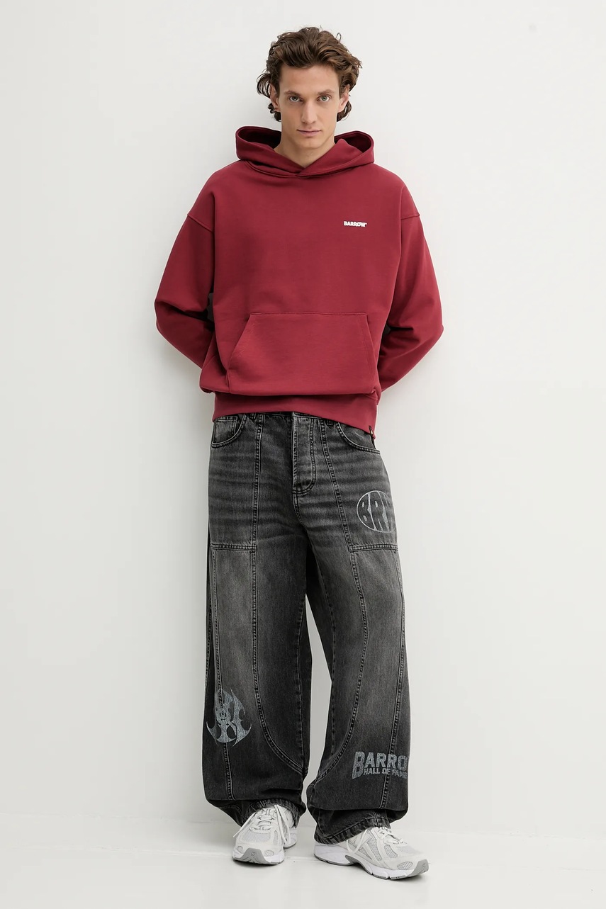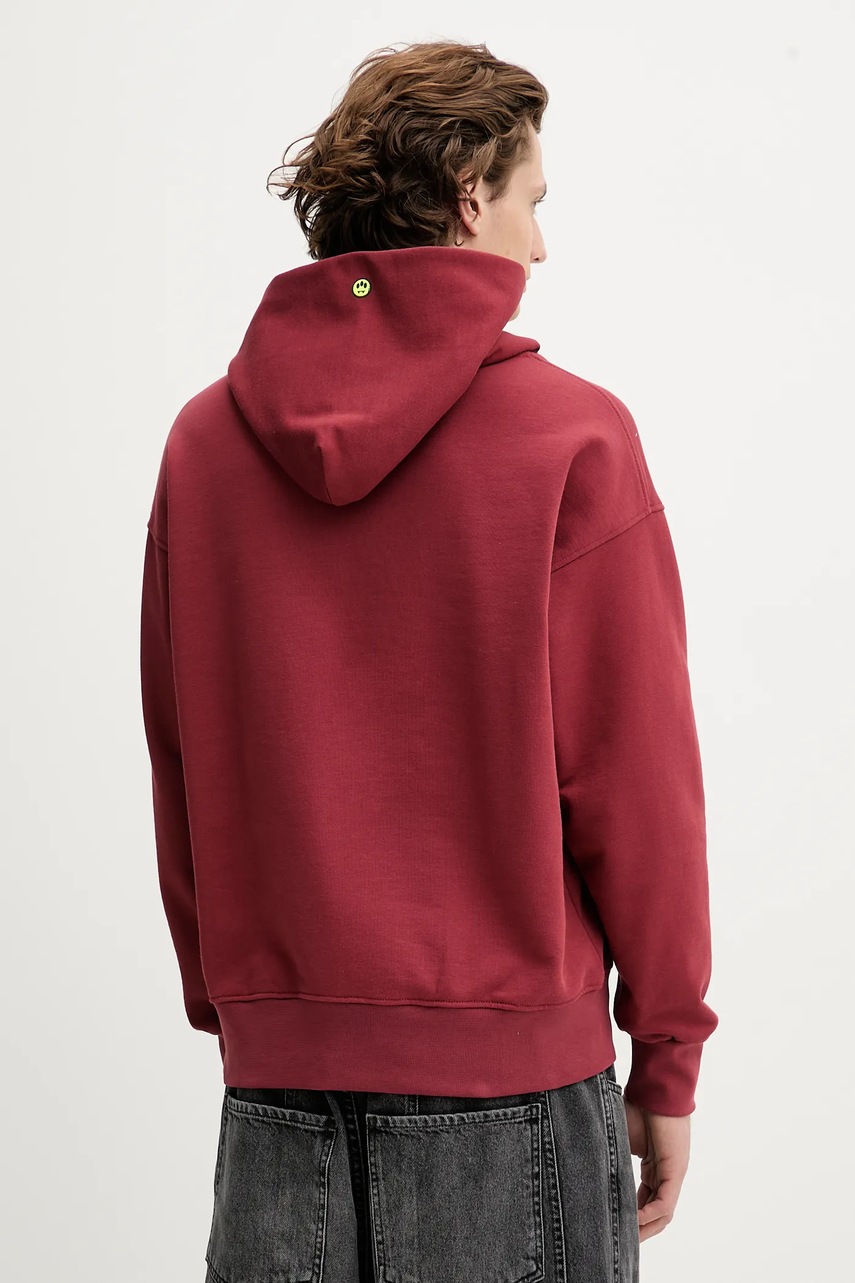 Barrow bluza bawełniana kolor bordowy z kapturem z nadrukiem F5BWUAHS068