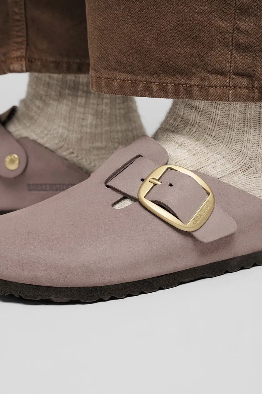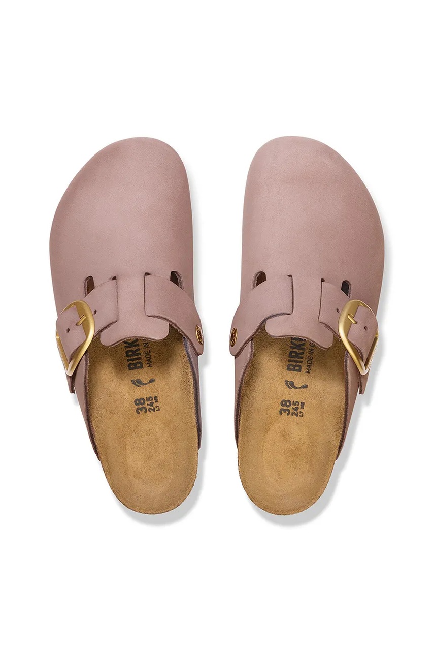 Birkenstock klapki nubukowe Boston Big Buckle damskie kolor fioletowy 1030544